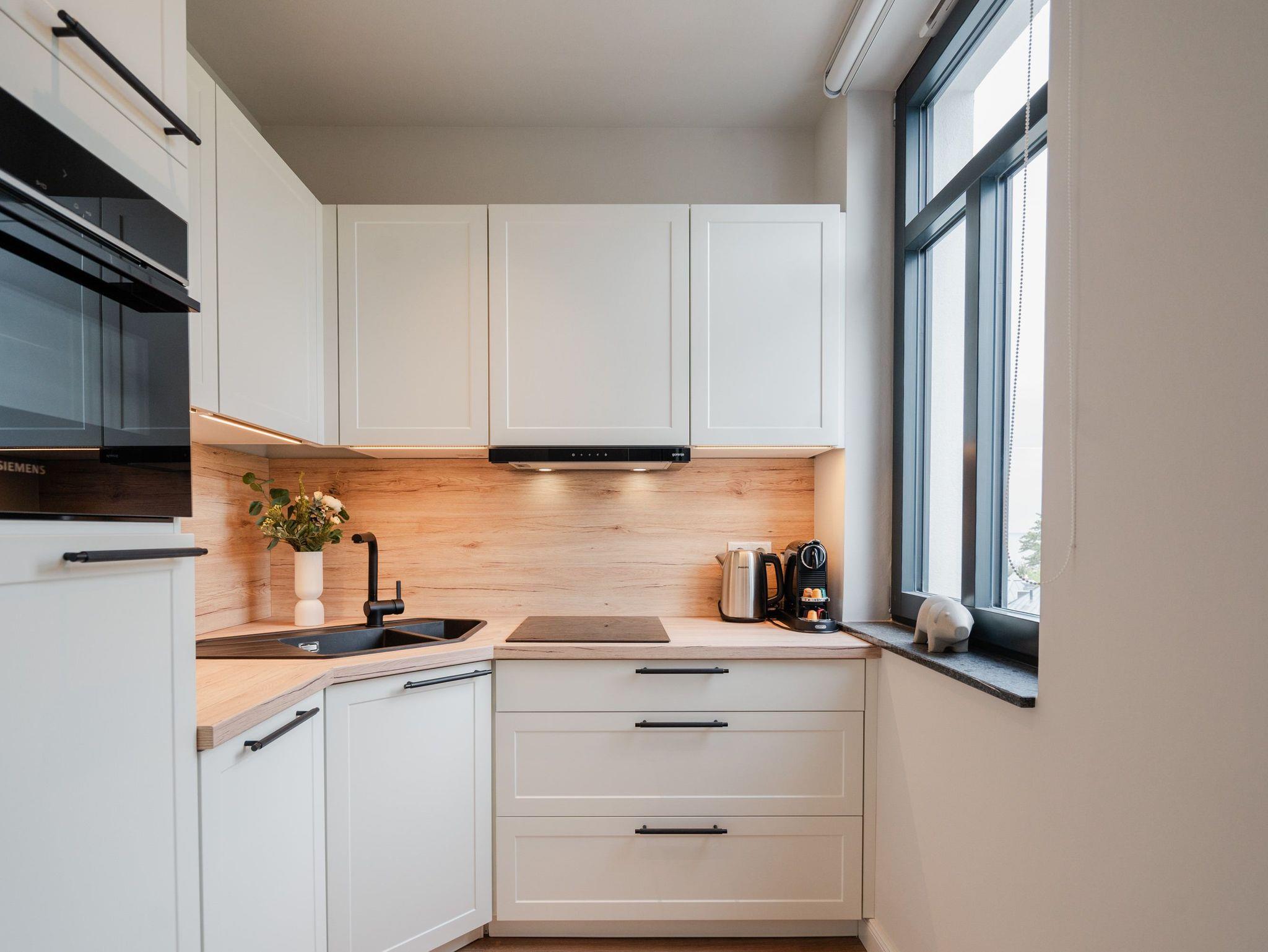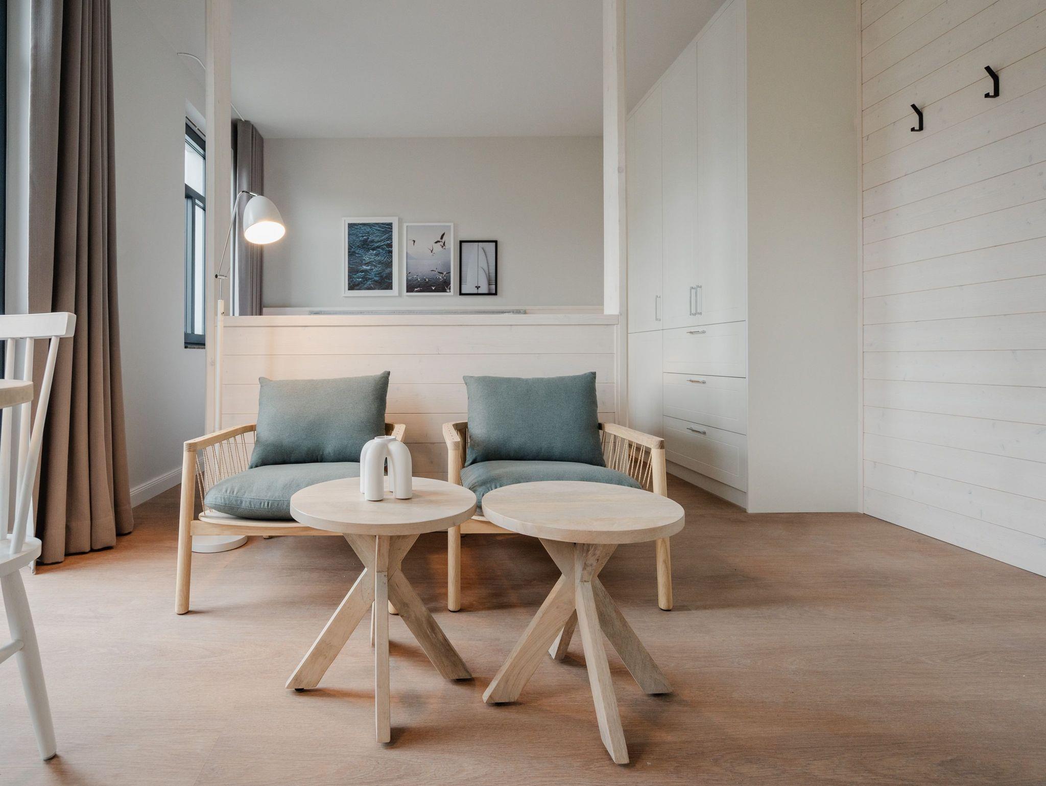 Klein, aber fein und absolut kuschelig ist das 31 Quadratmeter große 1-Raum-Appartement A 2.6 im Haus A im 2. Obergeschoss. Es ist für bis zu zwei Personen ein idealer Rückzugsort direkt am Meer. Ein Wohlfühlort, der durch seine liebevolle Einrichtung und das moderne, nordische Designkonzept aus hellen und warmen Farben besticht. In dem offenen Wohn-Essbereich, in den eine kleine, aber hochwertig und voll ausgestattete Küchennische integriert ist, besticht durch seine Behaglichkeit und den seitlichen Seeblick, den Sie vom Süd-Ost-Balkon aus genießen können. Ob vom Bett oder von den beiden Sesseln aus ein 43-Zoll-Flachbildfernseher sorgt für spannende Filmabende. Am schönen Esstisch oder am Tisch auf dem Balkon schmeckt das Frühstück bei Morgensonne und gesunder Seeluft gleich noch einmal so gut. Das komfortable Boxspringdoppelbett (1,80m x 2,00m) verspricht erholsame Nächte und schöne Urlaubsträume, und ein großer Kleiderschrank bietet ausreichend Stauraum für Ihre Kleidung und persönlichen Gegenstände. Für Erfrischung sorgt das innenliegende Bad mit einer Dusche, einem WC und einem Waschtisch. Zur Wohnung gehört ein PKW-Stellplatz in der Tiefgarage. Ankommen und wohlfühlen das wünschen wir Ihnen in diesem charmanten Feriendomizil.