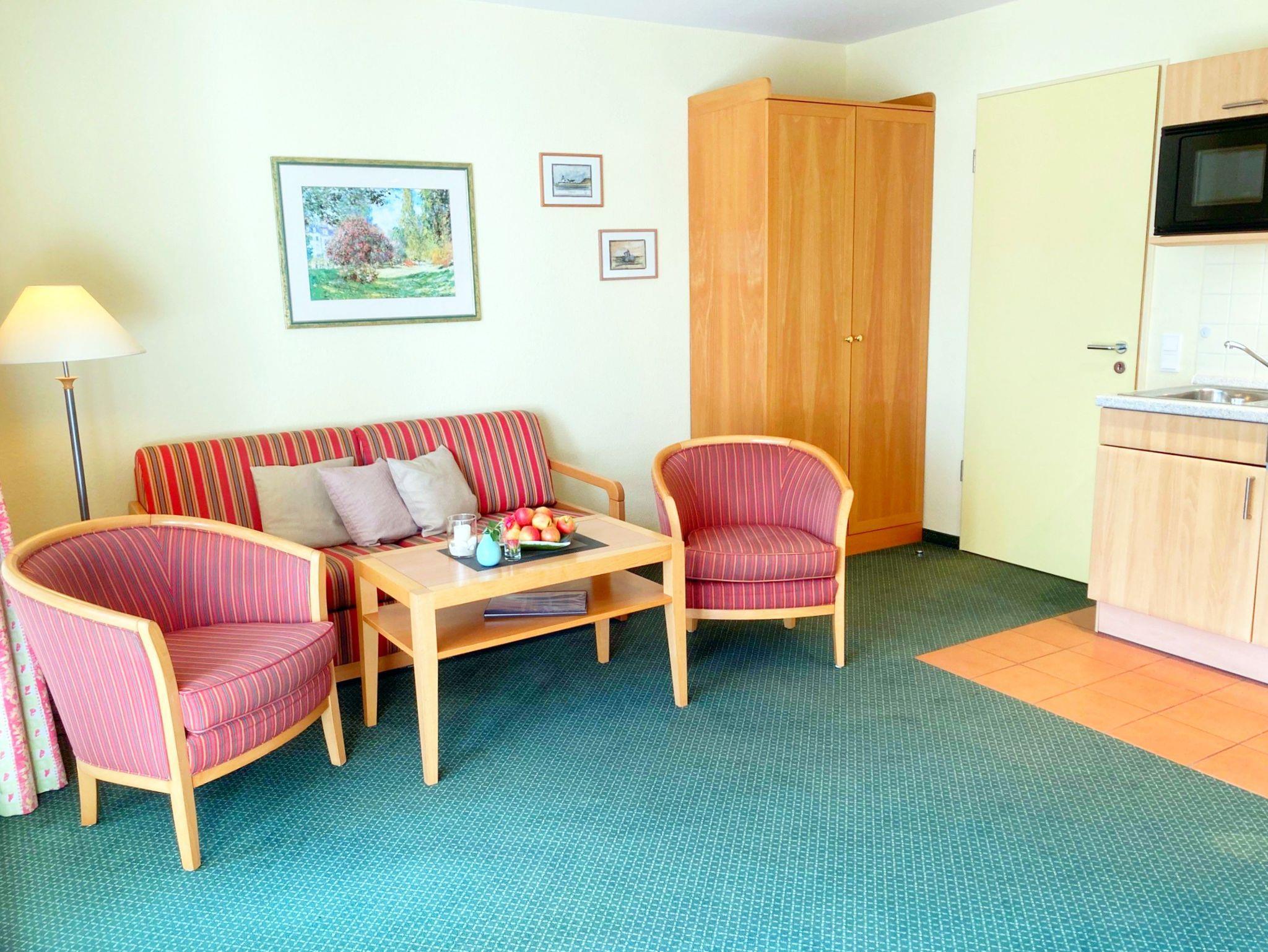Die 46 qm große 2-Raum-Ferienwohnung befindet sich im 1. OG (Süd-Westlage) der Appartementanlage und ist für bis zu vier Personen geeignet. Ein Aufzug im Haus ist vorhanden.