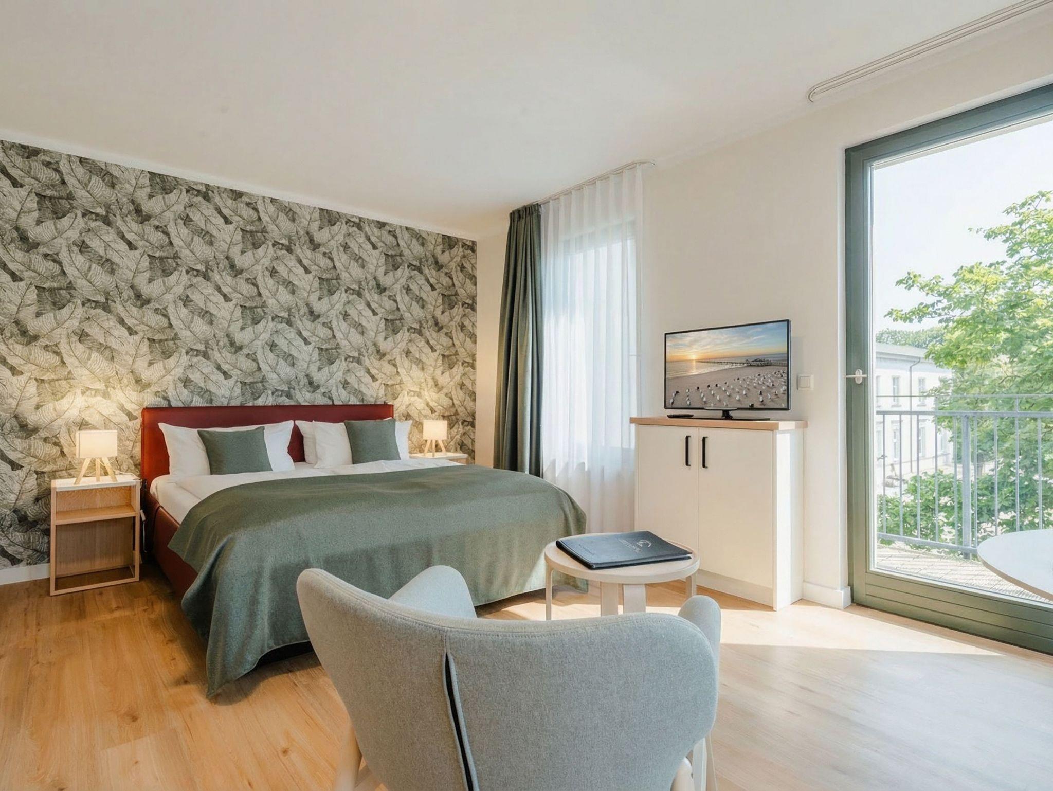 Charmante 1-Raum-Ferienwohnung mit Balkon in der Villa Goodewind nahe Strand und Seebrücke.