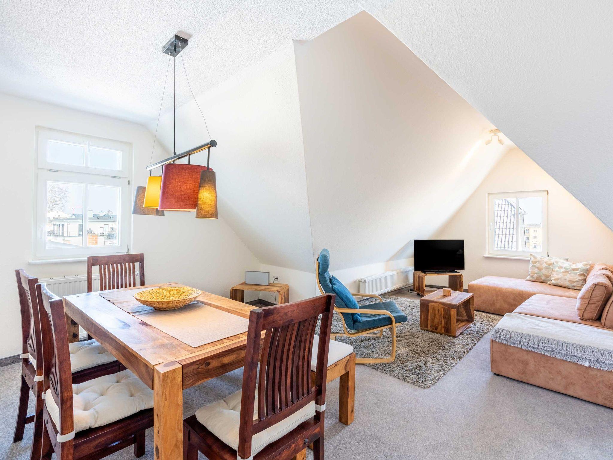 Charmante Dachgeschosswohnung im Haus Sanssouci, Usedom, mit Meerblick und zentraler Lage nahe Strand und Promenade.