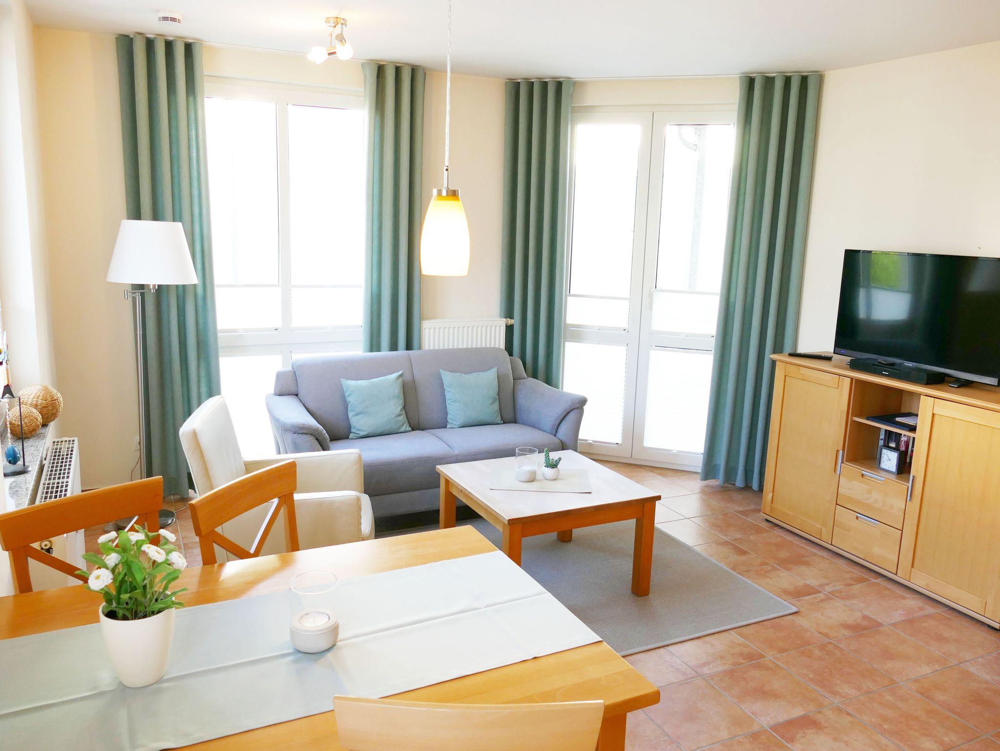 Die helle und freundliche Ferienwohnung befindet sich in der zweiten Etage des Neubaus der Villa Linquenda. Die 65 qm große Wohnung ist hochwertig eingerichtet und bietet Platz für bis zu vier Personen. Sie verfügt über ein Wohnbereich mit Sitzgruppe & Flat-TV, eine komplett ausgestattete Küchenzeile, ein Schlafzimmer mit Doppelbett ( 1,80m x 2,00m) und zusätzlichem Flat-TV sowie ein zweites Schlafzimmer mit zwei Einzelbetten. Das Bad verfügt über eine Dusche und WC. Zwei Balkone runden das Angebot der Wohnung ab.