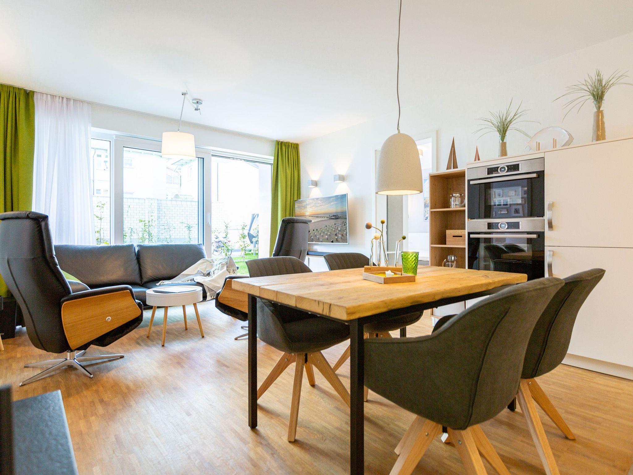 Gemütliches Drei-Zimmer-Appartement mit Kamin, Sauna und Terrasse nahe Ostseestrand im Quartier 7, Ahlbeck.