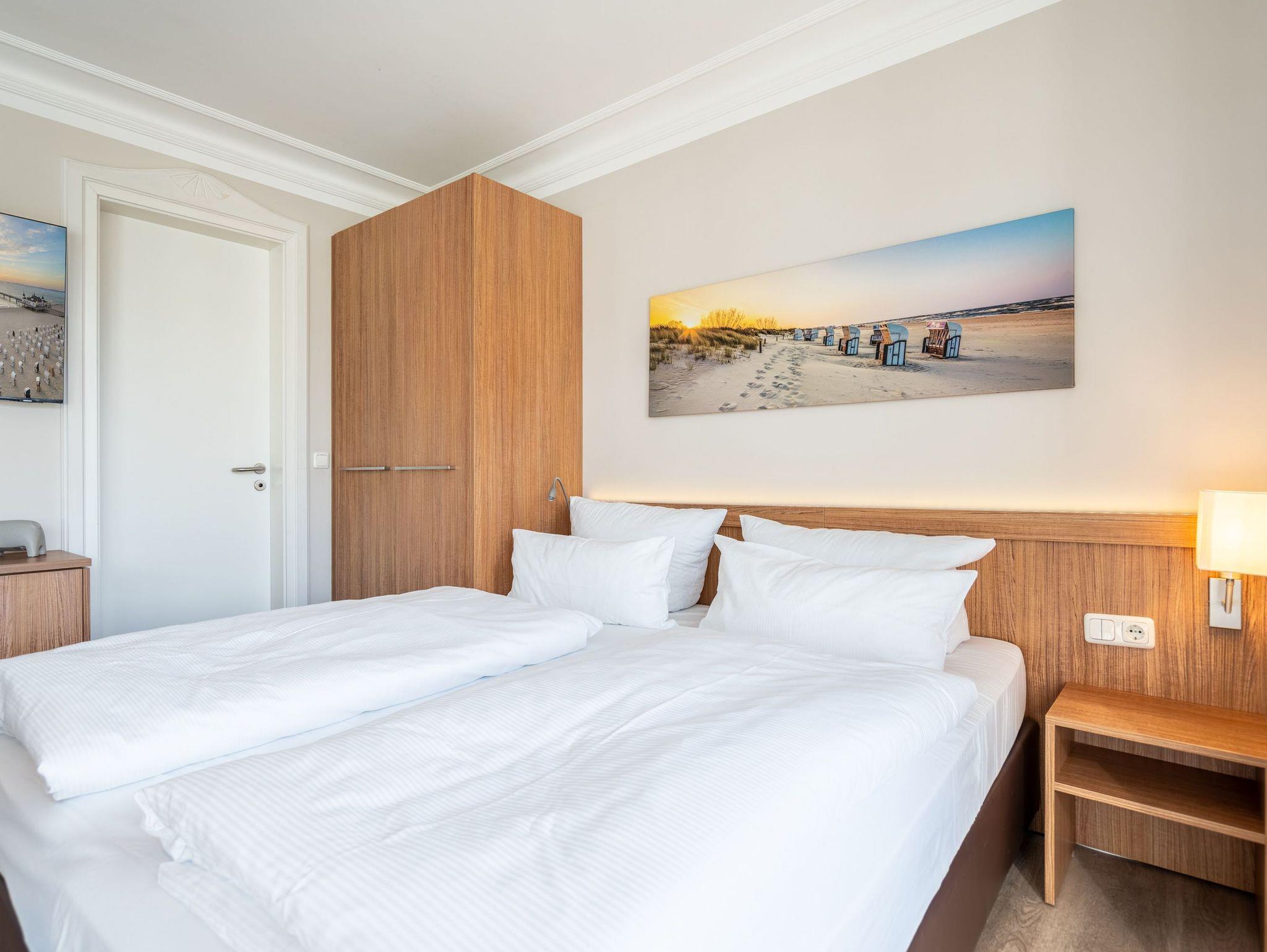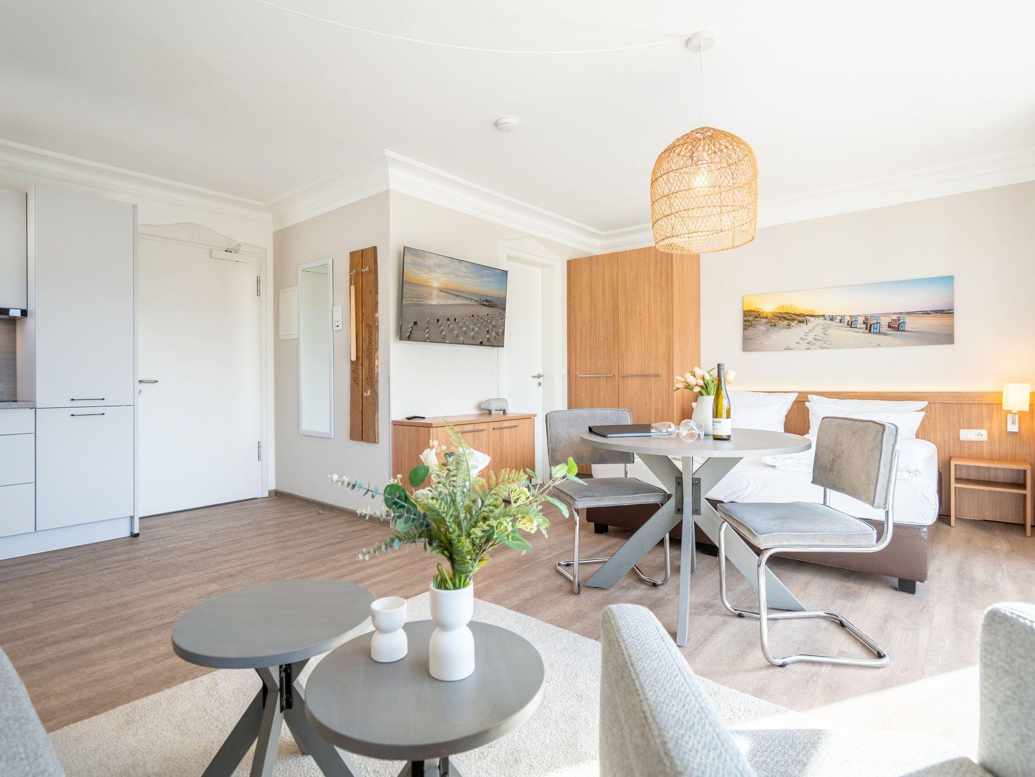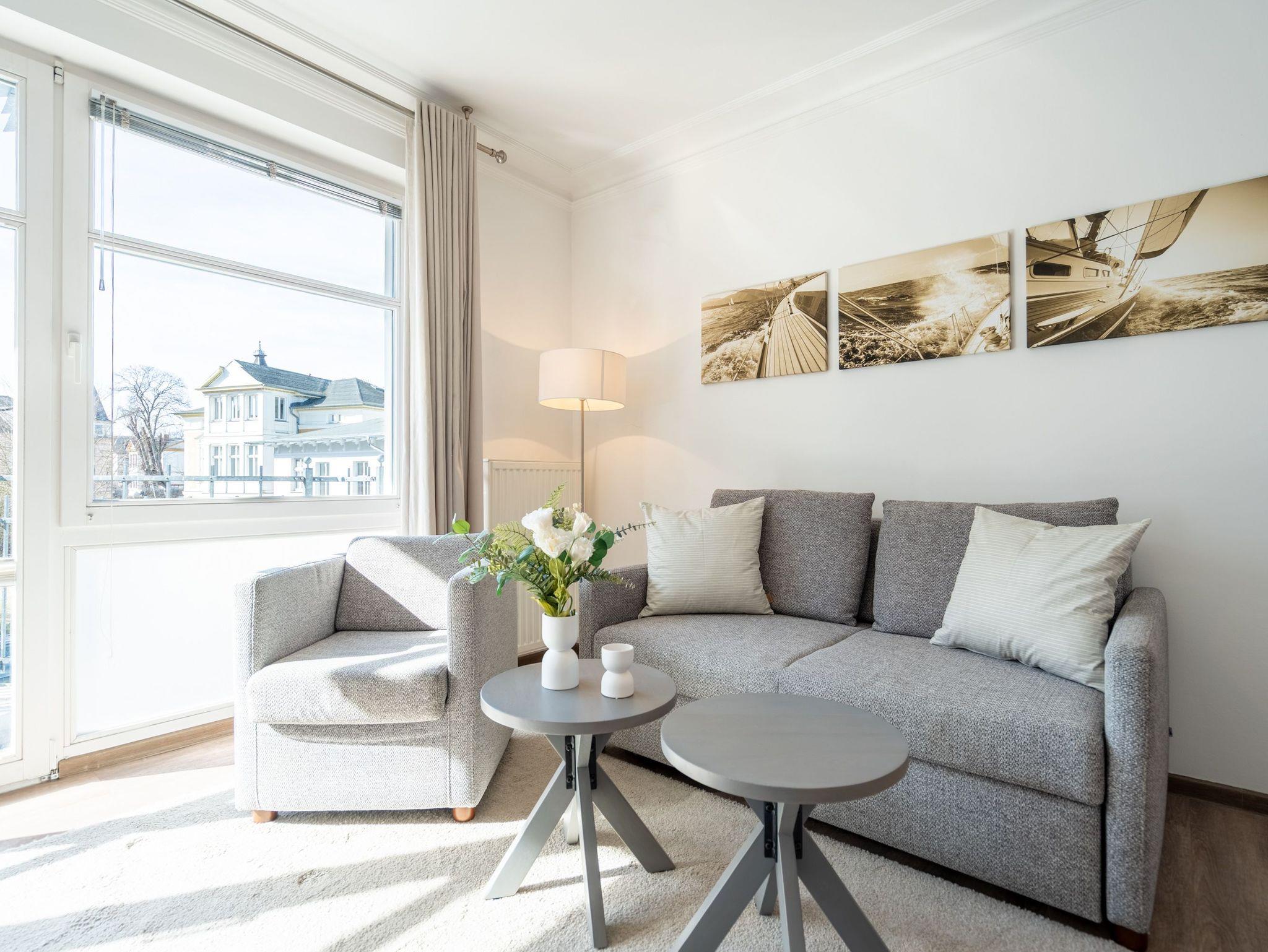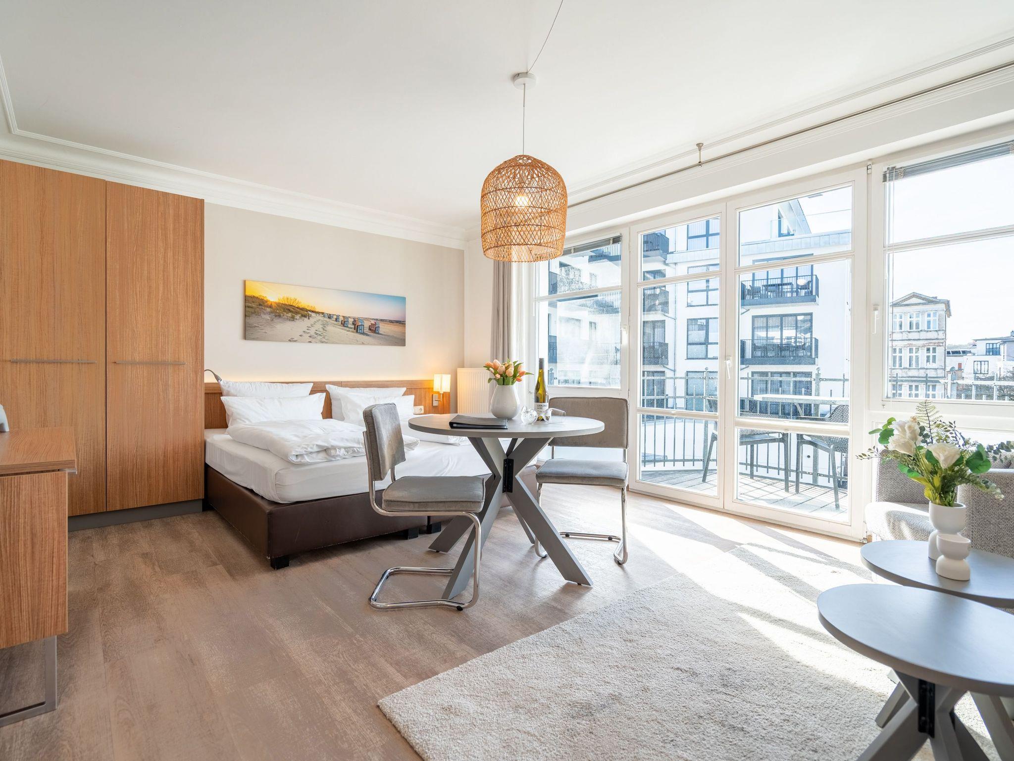 Moderne 1-Raum-Ferienwohnung in Ahlbeck mit Balkon, WLAN und Tiefgaragenstellplatz, nur wenige Schritte vom Strand entfernt.