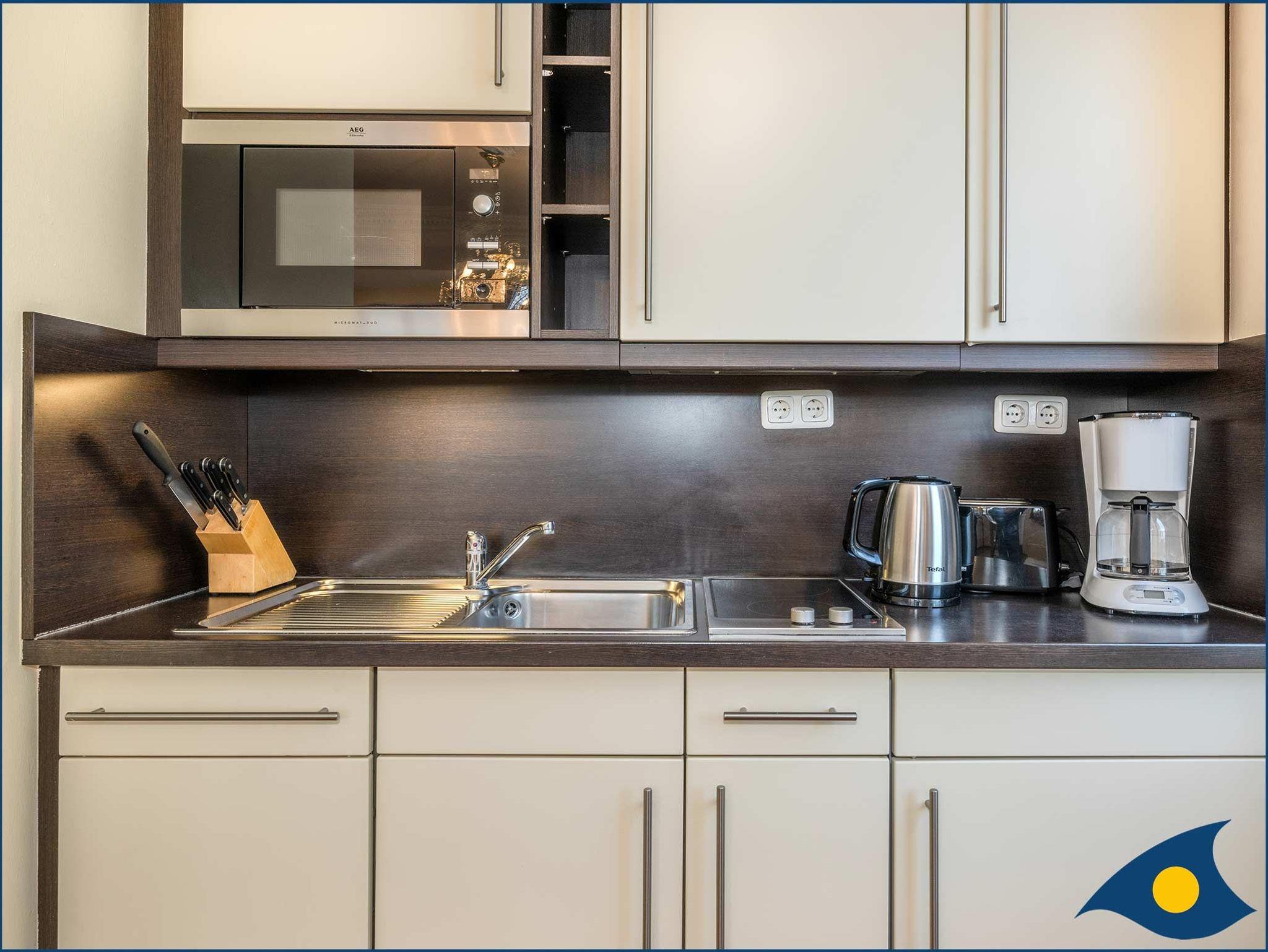 • offene Küche mit Spülmaschine und Mikrowelle