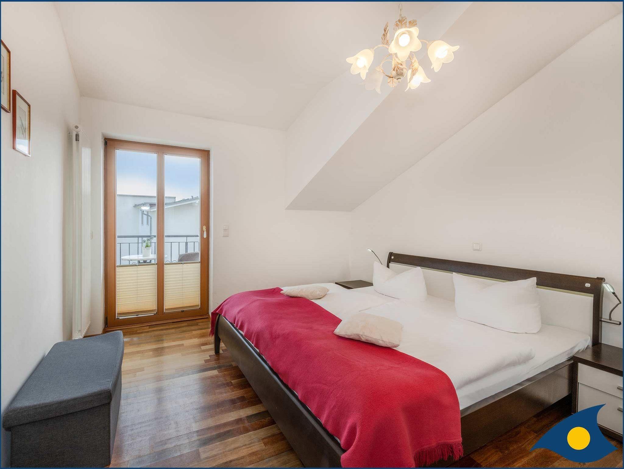 Erholsame Nächte können Sie im separaten Schlafzimmer mit Doppelbett und Südbalkon genießen.