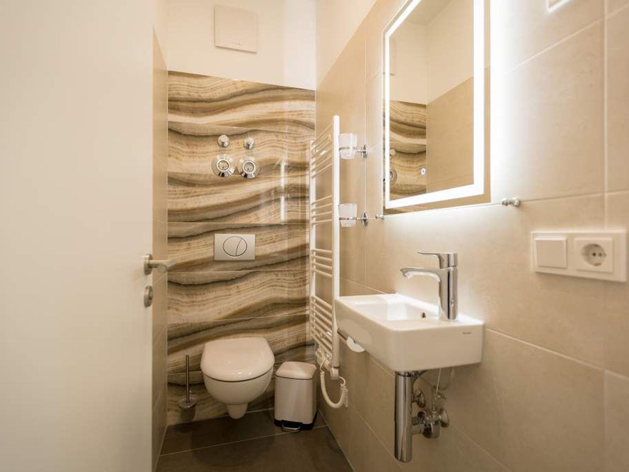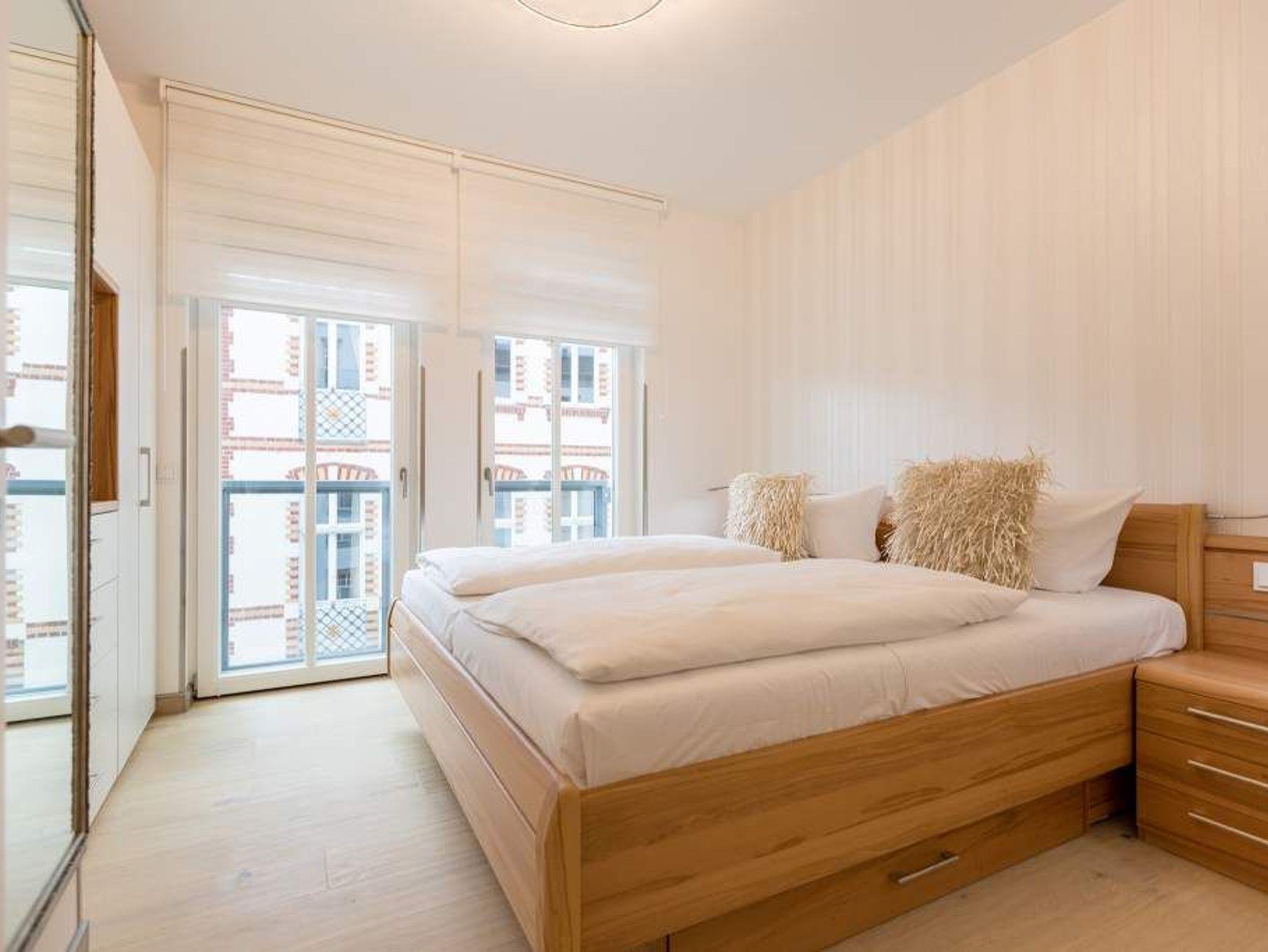 Stylisch ? von der Farbauswahl über die Wandgestaltung und das Lampendesign bis zur Einrichtung. In diesem Feriendomizil Nummer 12 in der dritten Etage des Westendpalais erwartet Sie exklusives und geschmackvolles Wohndesign. Doch ist das längst nicht alles, was die 70 Quadratmeter Wohntraum zu bieten haben. Schon in der Früh begrüßt sie die Sonne beim Frühstück auf dem Balkon. Und die Ostsee gibt Ihren unvergleichlichen Sound dazu. Lockt das Wetter nicht zum Entdecken der Inselschönheiten, bietet der Elektro-Kamin auf Knopfdruck eine gemütliche Atmosphäre. Dazu laden der große Flat-TV, ein Sony Personal Audio System (Radio, CD-Player), die CD Boombox mit USB Playback und ein Samsung Blu-ray Disc Player/DVD Player mit HDMI Kabel zum Entspannen auf der bequemen Leder-Sofalandschaft ein. Zum großzügigen, offenen Wohnzimmer gehört auch ein schöner Essplatz mit sechs Lederstühlen und einem Tisch. In der ebenfalls offenen Küchenzeile finden Sie alle notwendigen Küchengeräte und edles Designgeschirr. Von hier aus haben Sie Zugang zum Balkon. Vier Personen können in diesem schönen Domizil gemeinsam Urlauben. Denn die Wohnung verfügt über zwei Schlafzimmer mit jeweils einem Doppelbett (1,80 m 2,00 m), geräumigen Einbauschränken und Flat-TV. Das moderne Badezimmer ist mit einer Regen-Dusche, Waschtisch und WC ausgestattet. Ein Gäste-WC gibt es on top. Und in diesem Appartement können Sie sich noch auf ein ganz besonderes Highlight freuen: eine Finnische Sauna, die Sie kostenfrei benutzen können. Zur weiteren Wohnungsausstattung gehören ein Babybett sowie ein Picknick-Korb mit Strandgeschirr. Da steht dem entspannten Tag am Meer doch nichts mehr im Weg. Wollen Sie ein wenig die Insel erkunden, können Sie das mit den beiden Holländer-Fahrrädern, die zu der Wohnung dazu gehören. Also: Kommen Sie einfach an, stellen Sie Ihr Auto in der Tiefgarage ab und legen Sie los mit der Entspannung. Am Tiefgaragenstellplatz steht eine E Ladesäule zur Verfügung. Die Nutzung erfolgt bequem über handelsübliche Karten. Die Betten haben wir für Sie bereits bezogen und Handtücher liegen bereit.