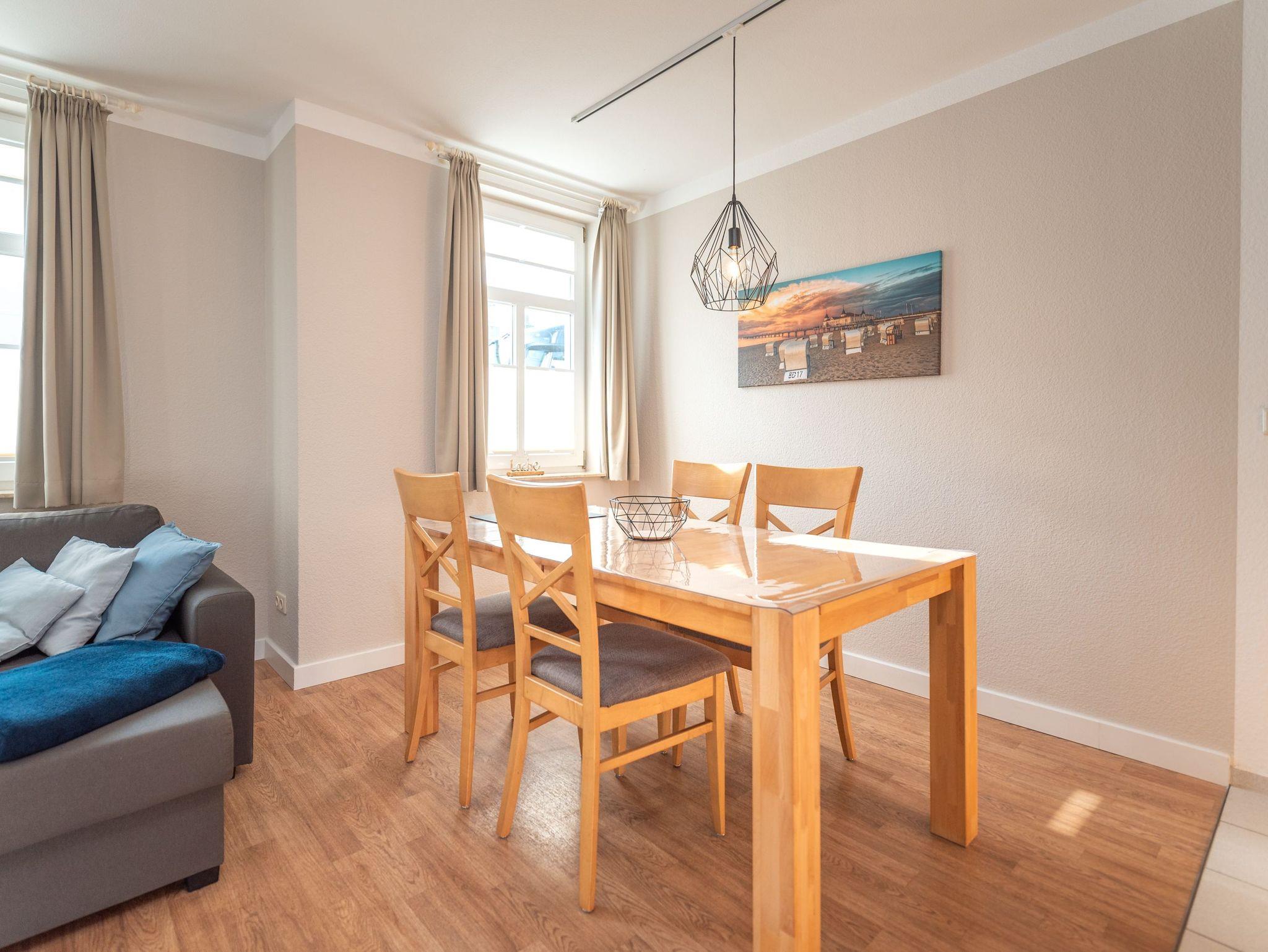 Willkommen in der charmanten Ferienwohnung 1 im „Haus am Kurpark“ im Seebad Ahlbeck, nur wenige Schritte vom Strand und der historischen Seebrücke entfernt. Diese gemütliche Wohnung bietet auf etwa 50 Quadratmetern Platz für bis zu vier Erwachsene, umgeben von der malerischen Kulisse des Seebads und direkt neben dem Kurpark. Das Interieur kombiniert modernen Komfort mit dem traditionellen Charme der Bäderarchitektur, eingebettet in eine entspannende Atmosphäre.