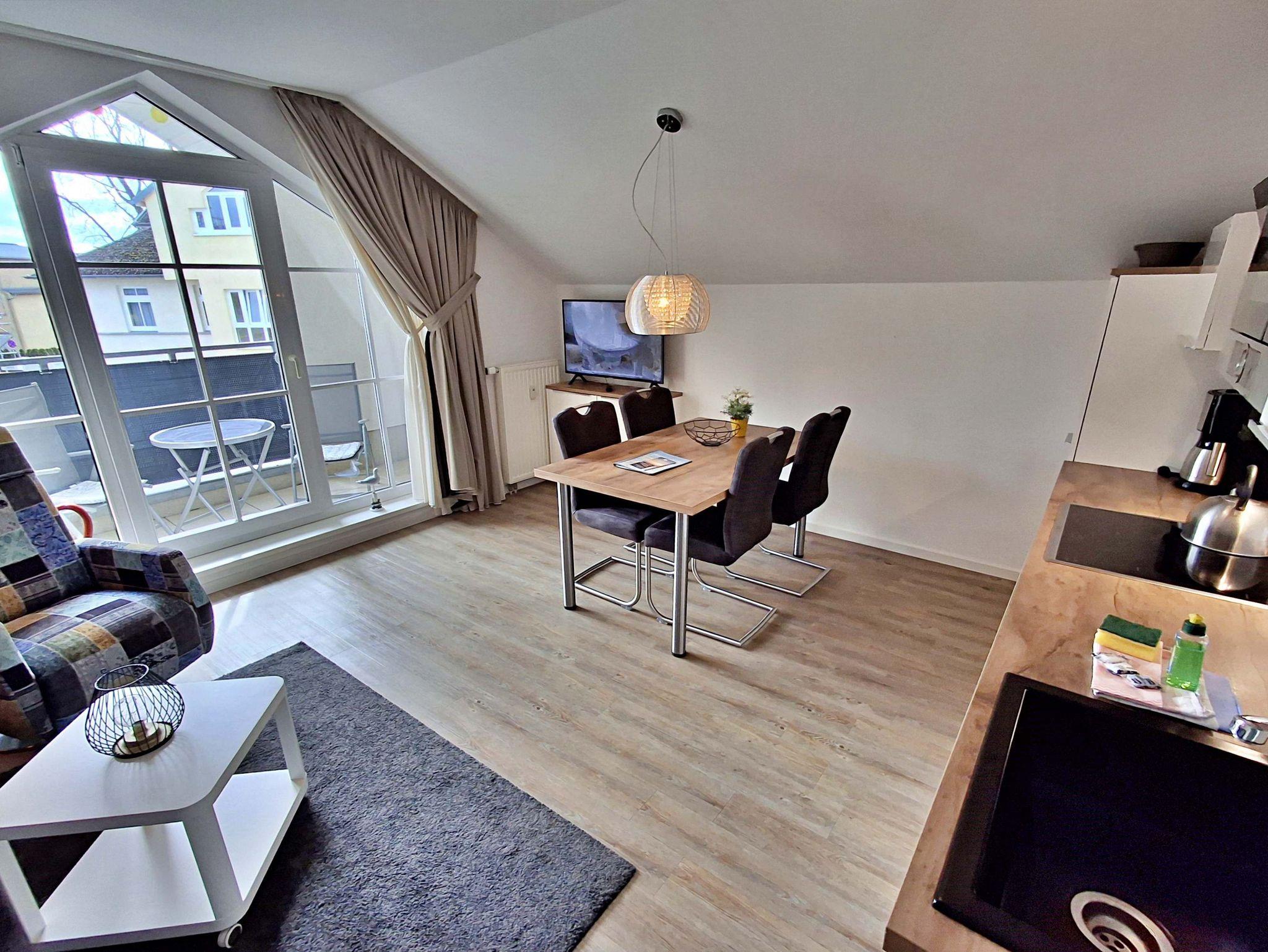 Moderne Ferienwohnung in Ahlbeck, nur 100 m vom Strand und nahe der Seebrücken, mit Balkon und kostenfreiem Parkplatz.