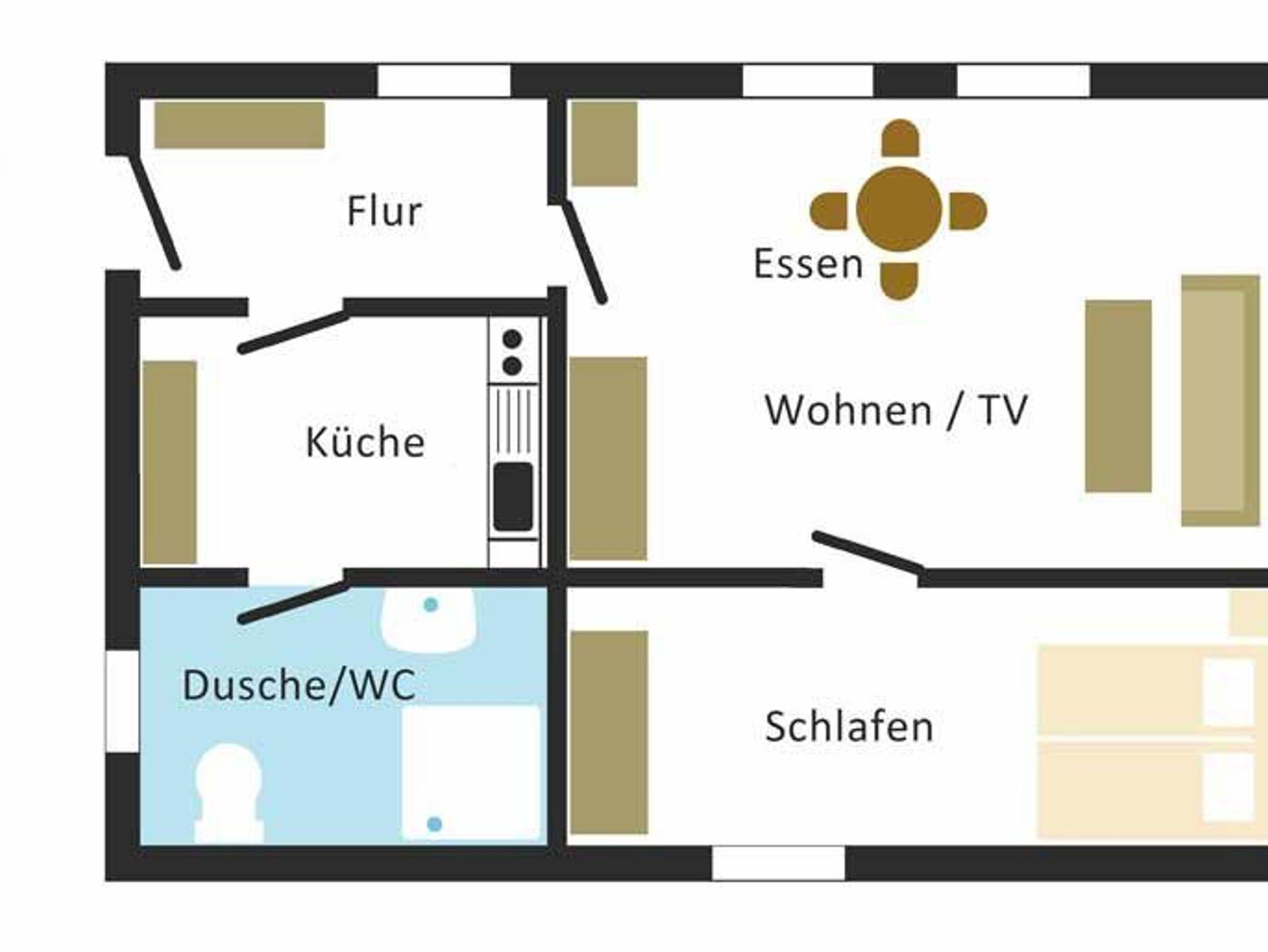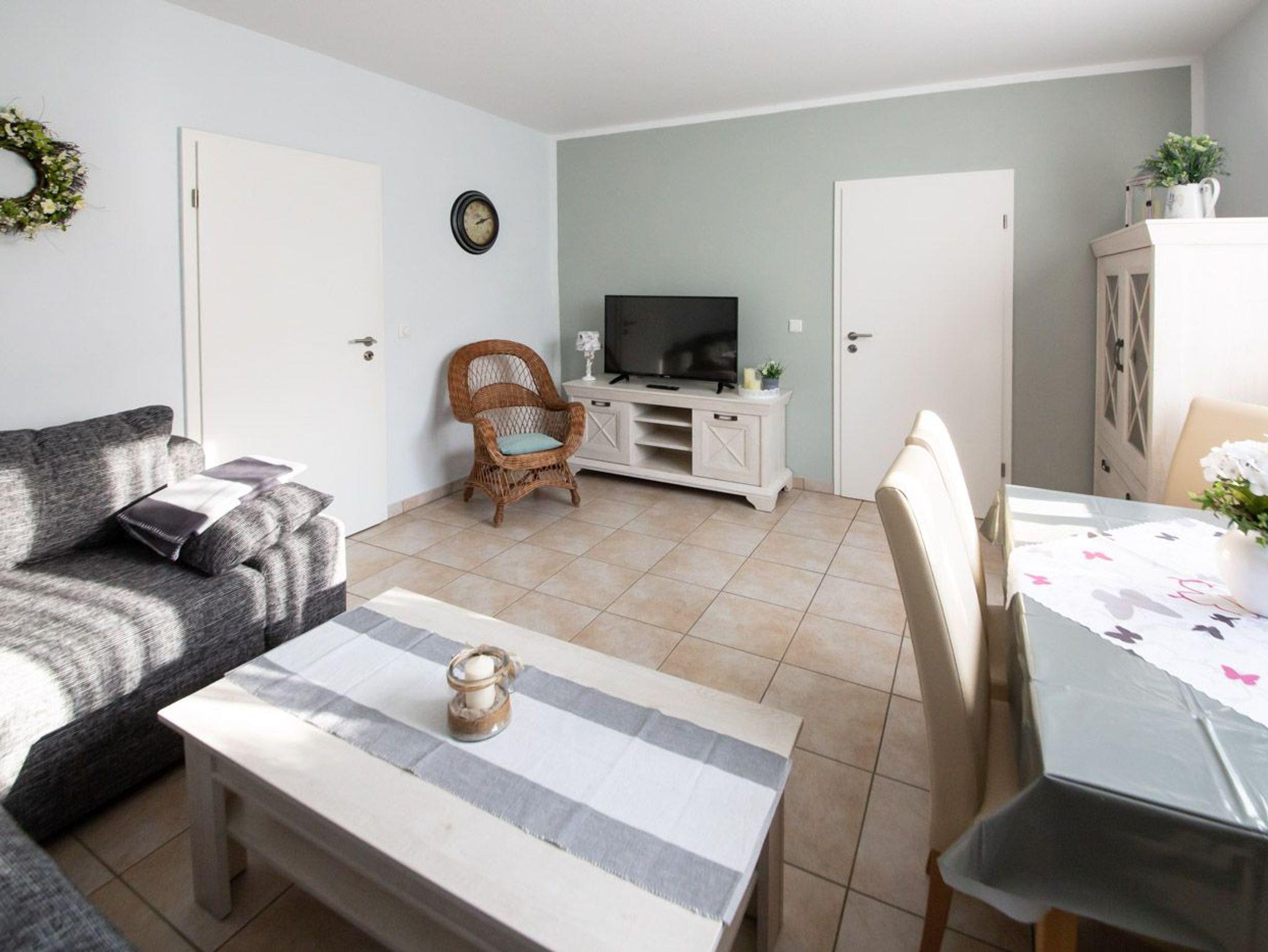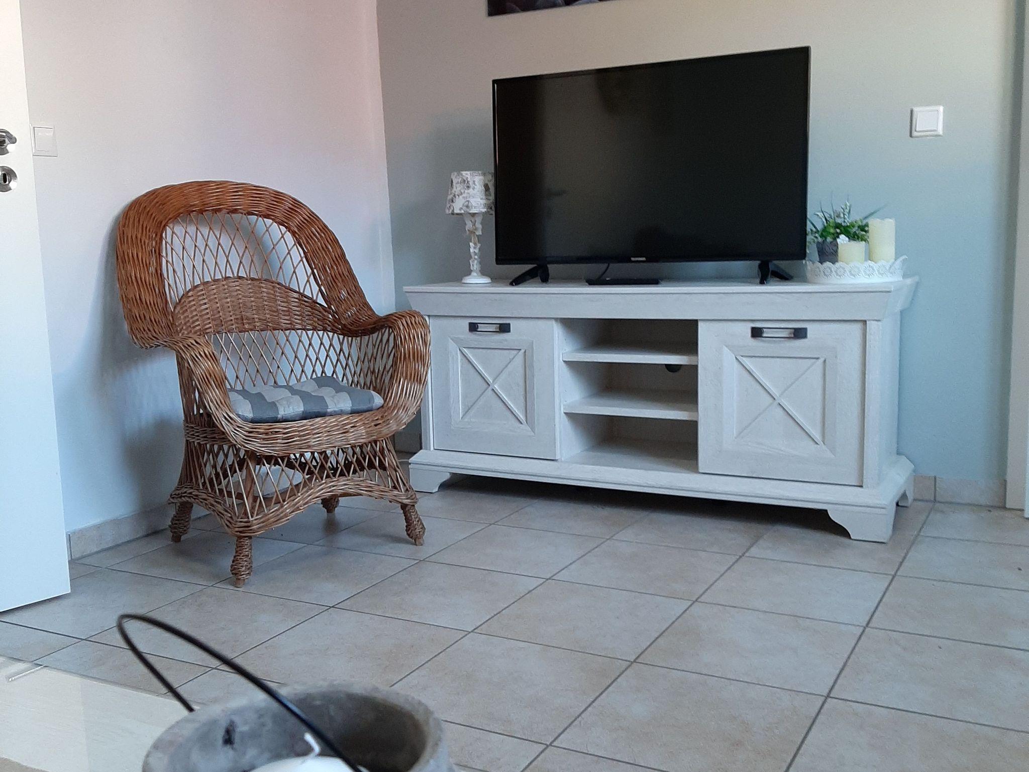 Die 56 qm große Ferienwohnung im Erdgeschoss ist für bis zu 4 Personen ausgestattet. Sie verfügt über ein Wohnzimmer mit gemütlicher Couch-Ecke, TV und Esstisch. Die komplett eingerichtete und separate Einbauküche ist mit Herd mit Cerankochfeld und Dunstabzug, Kühlschrank, Toaster, Kaffeemaschine, Wasserkocher, Mikrowelle u.v.m. ausgestattet. Das Schlafzimmer verfügt über ein Doppelbett und Kleiderschrank. Unser Bad ist mit Dusche und WC ausgestattet.