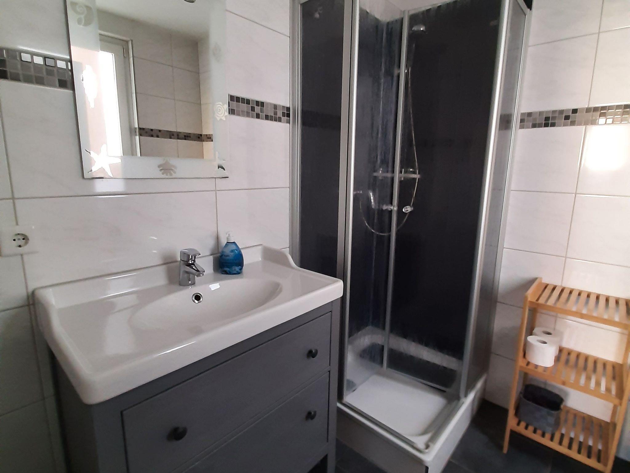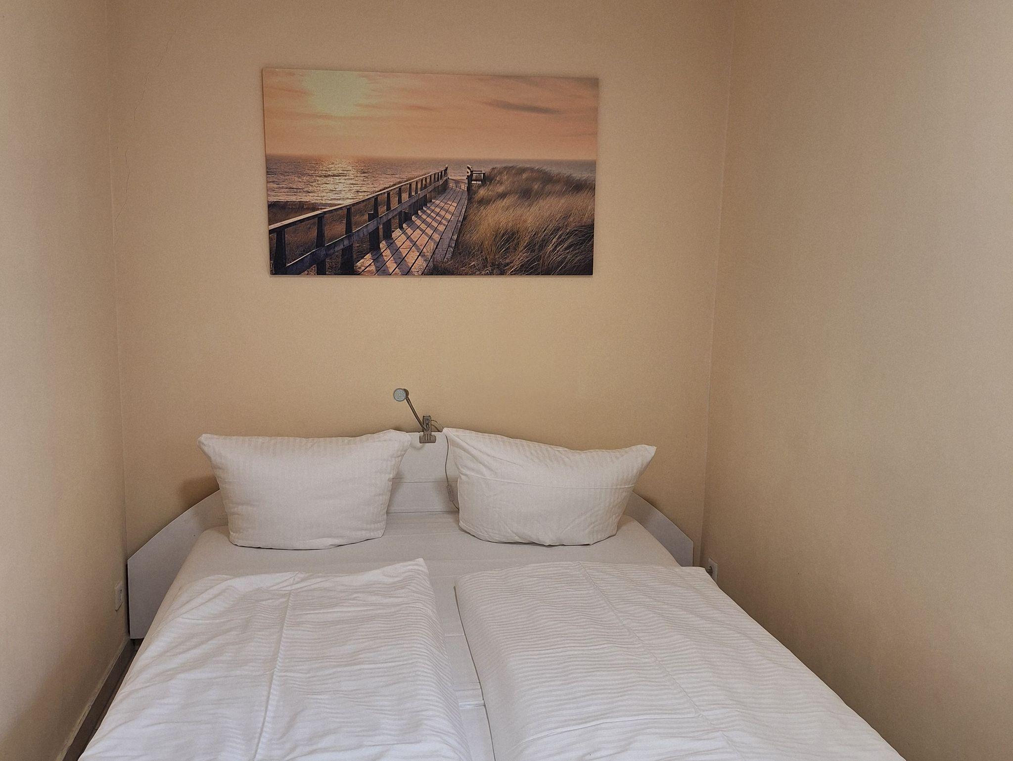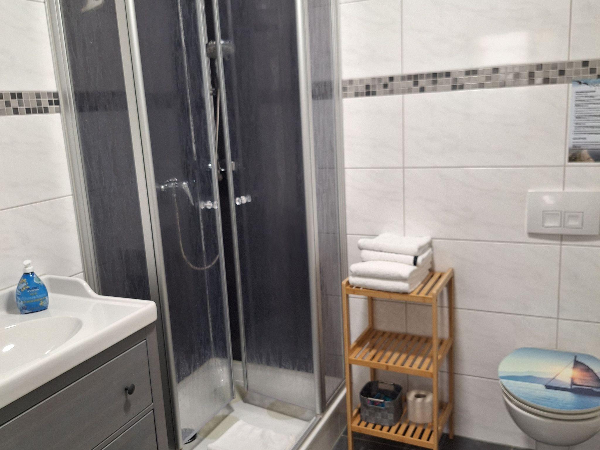 Die 56 qm große Ferienwohnung im Erdgeschoss ist für bis zu 4 Personen ausgestattet. Sie verfügt über ein Wohnzimmer mit gemütlicher Couch-Ecke, TV und Esstisch. Die komplett eingerichtete und separate Einbauküche ist mit Herd mit Cerankochfeld und Dunstabzug, Kühlschrank, Toaster, Kaffeemaschine, Wasserkocher, Mikrowelle u.v.m. ausgestattet. Das Schlafzimmer verfügt über ein Doppelbett und Kleiderschrank. Unser Bad ist mit Dusche und WC ausgestattet.