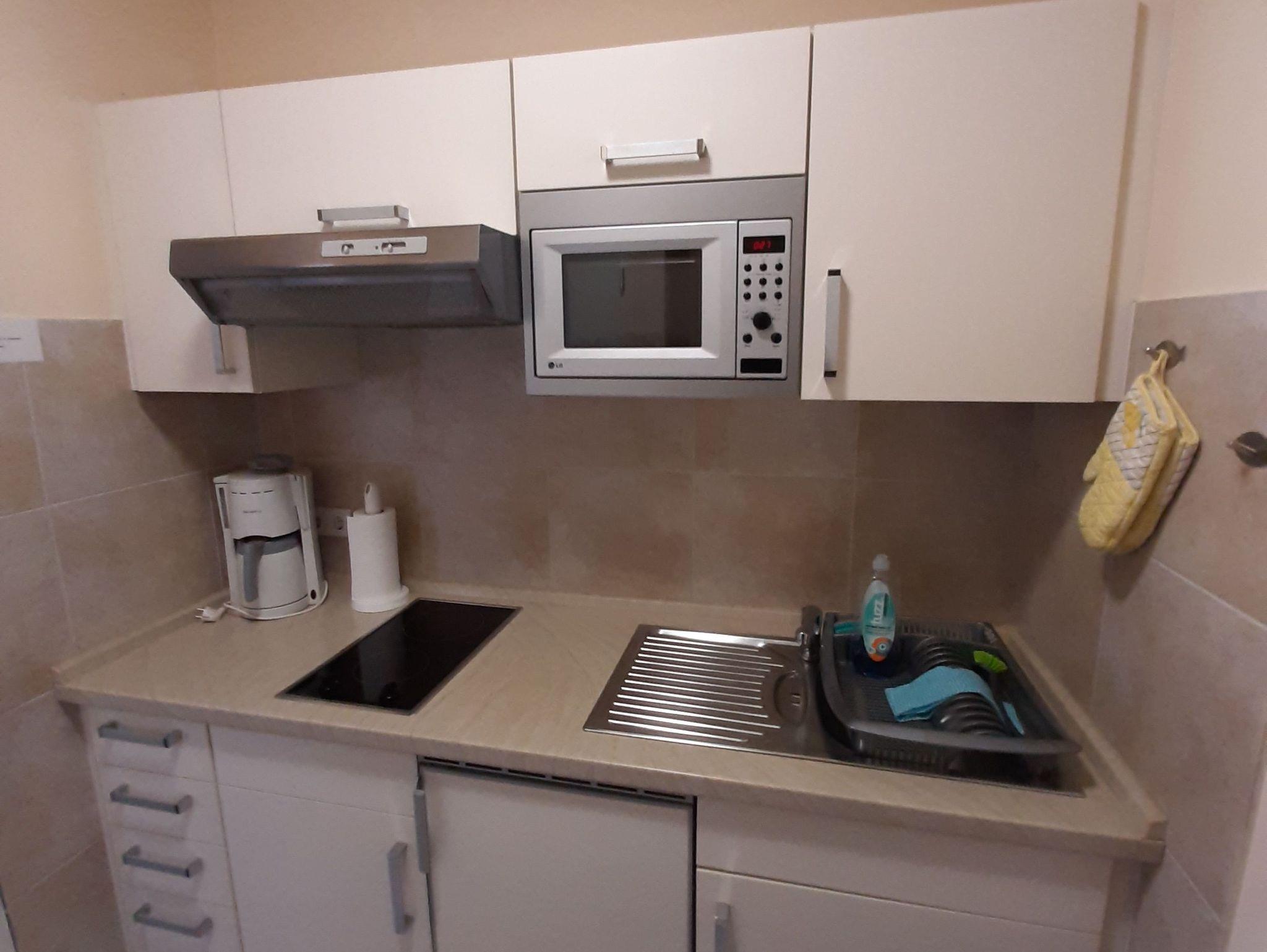 Toaster, Kaffeemaschine, Wasserkocher, Mikrowelle u.v.m. ausgestattet. Das Schlafzimmer verfügt über ein Doppelbett und einen