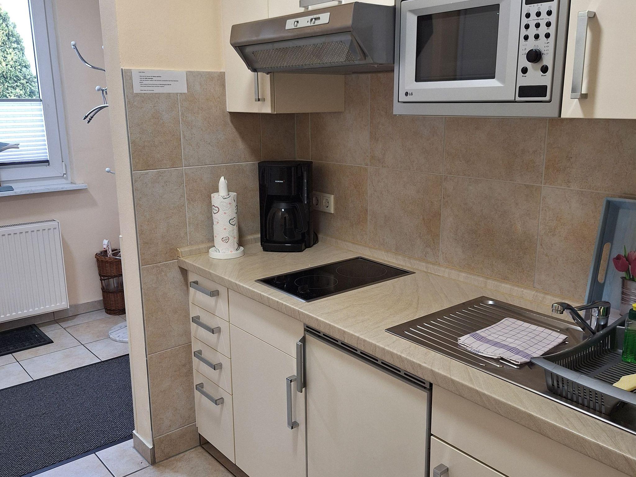 Unsere 2 Raum Ferienwohnung mit Wohnz., Schlafz., Einbauküche und Bad ist gemütlich und komfortable eingerichtet und befinden sich zu ebener Erde mit W-Lan-Internetzugang (DSL/Breitband) und mit Parkplatz auf dem Grundstück.