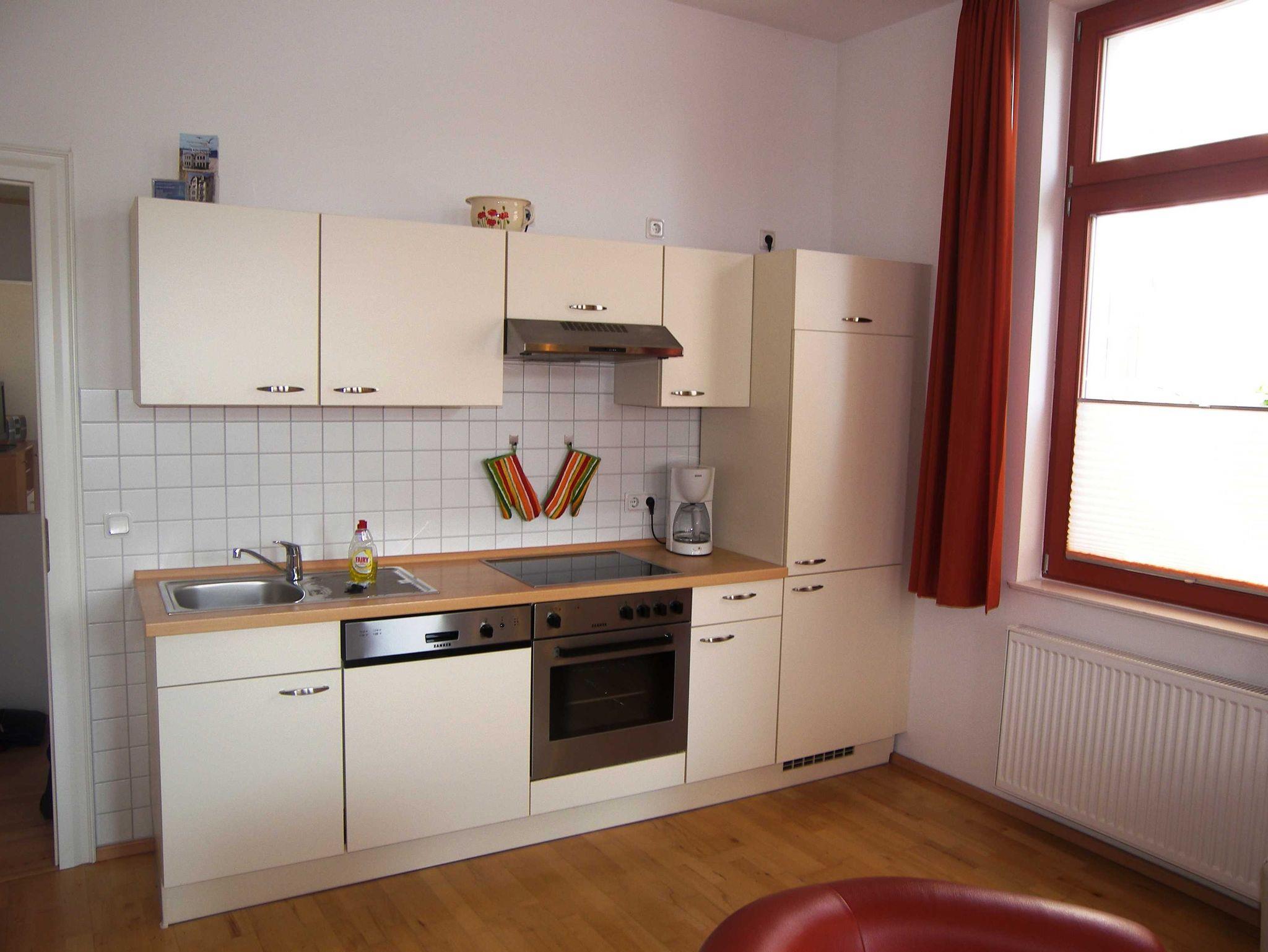 Die helle, freundliche 2-Raum-Ferienwohnung ist ca. 50qm groß und befindet sich im Erdgeschoss der Villa Meerblick. Sie bietet Platz für bis zu 4 Personen und verfügt über einen Wintergarten mit schönem Blick auf die Ahlbecker Strandpromenade (kein Meerblick). Der großzügige Wohn-Essbreich ist mit einem Schlafsofa, Flat-TV, Esstisch und einer modernen Küchenzeile mit Cerankochfeld, Backofen, Kühlschrank, Geschirrspüler, Kaffeemaschine, Wasserkocher und Toaster ausgestattet. Das separate Schlafzimmer verfügt über ein Doppelbett und einen Kleiderschrank. Das Badezimmer ist mit Dusche/WC und Handtuchheizung ausgestattet. Bei Bedarf können ein Kinderhochstuhl und ein Kinderreisebett kostenlos gebucht werden (bitte Voranmeldung). Das W-Lan steht kostenfrei für Sie zur Verfügung.
