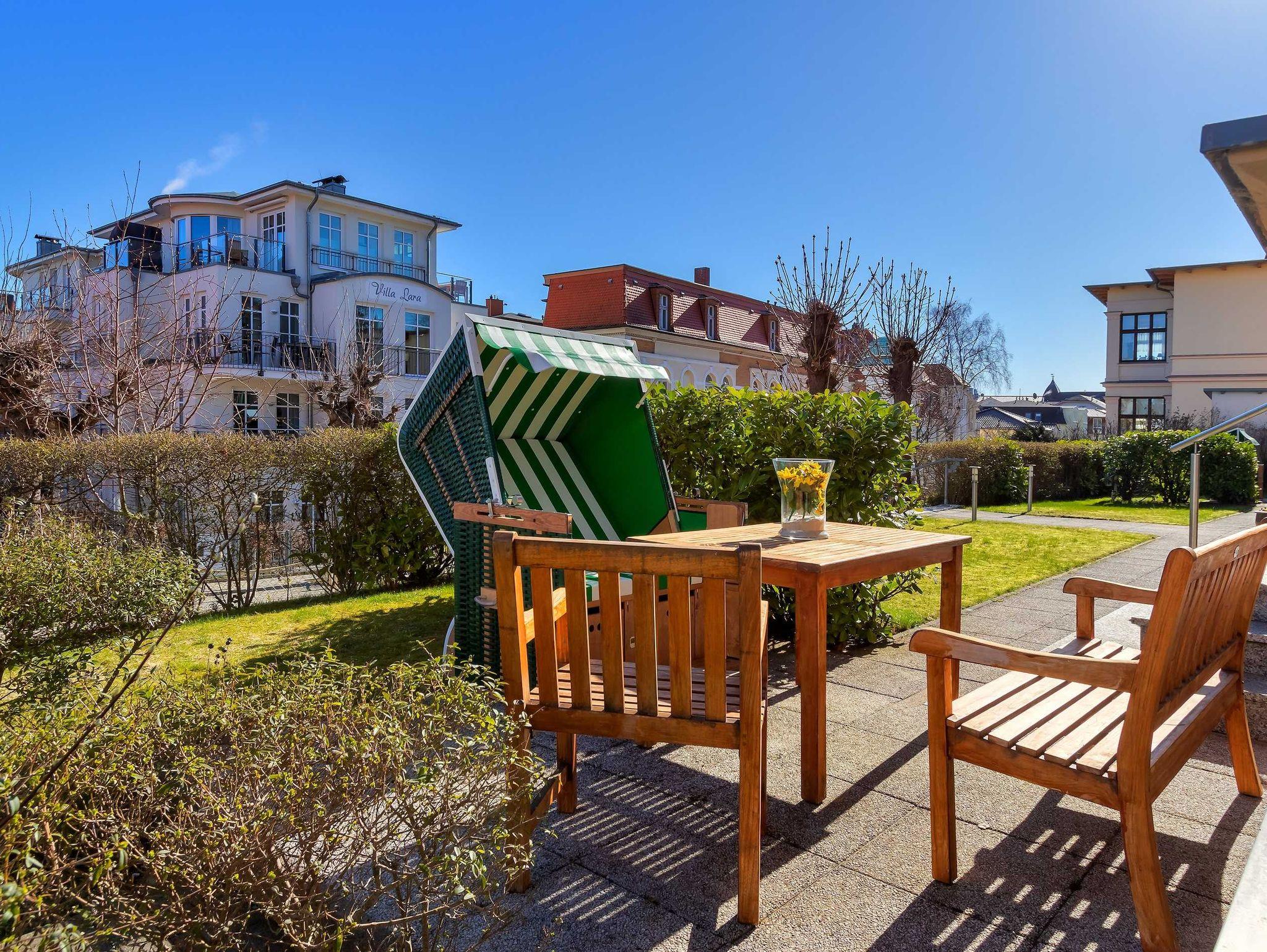 Villa Ostseewarte, STRANDNAH, teilw. SEEBLICK, FAHRSTUHL, Villa Ostseewarte Whg. 2, TERRASSE m. STRANDKORB