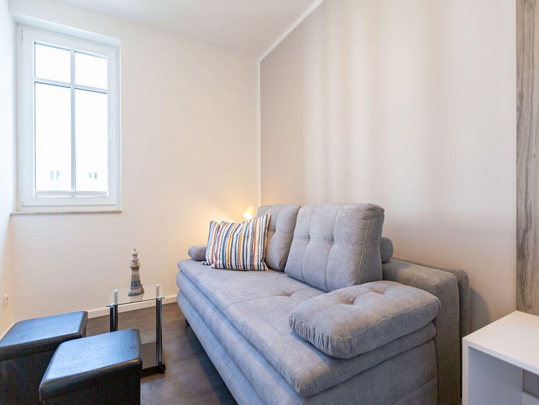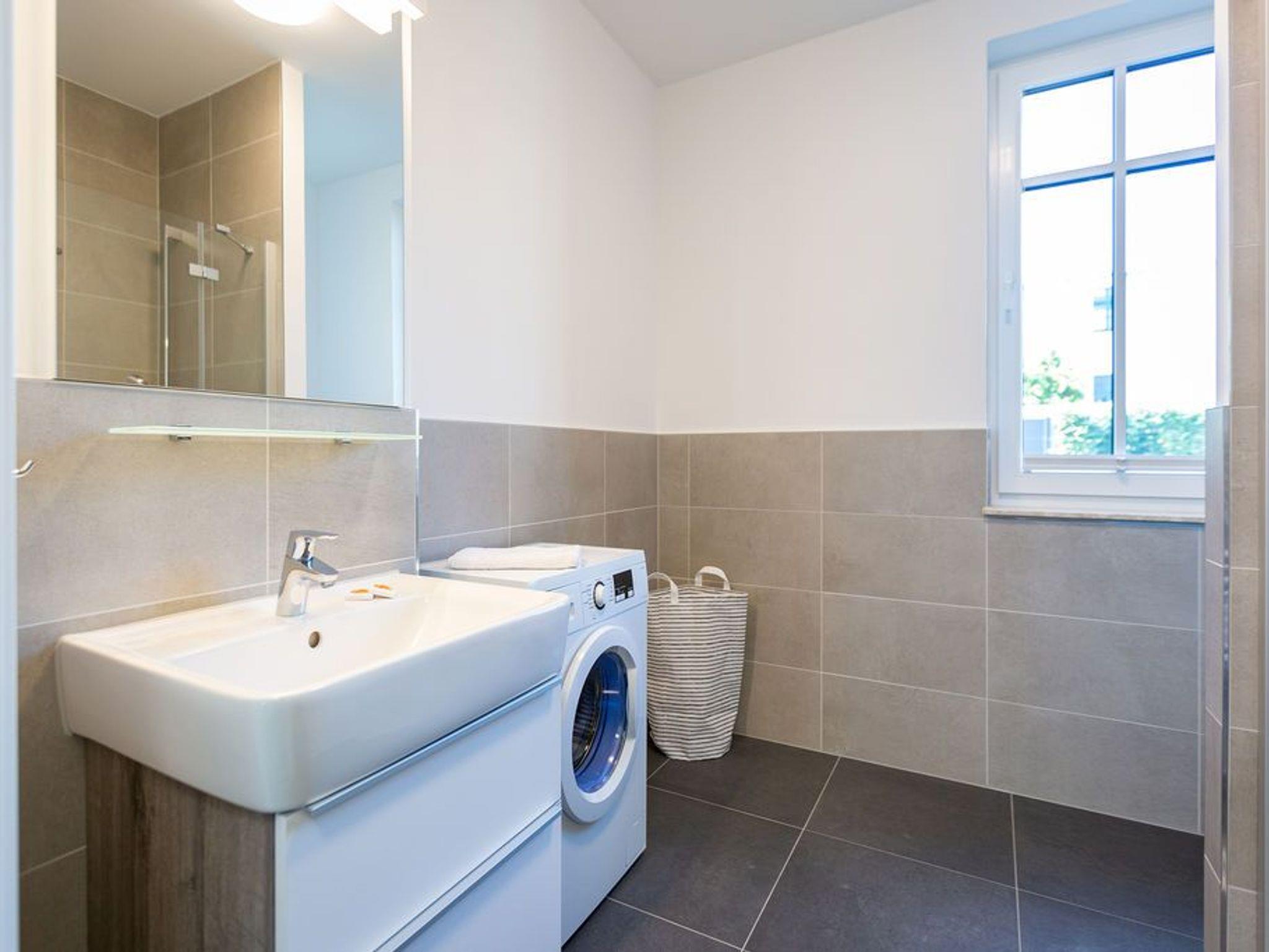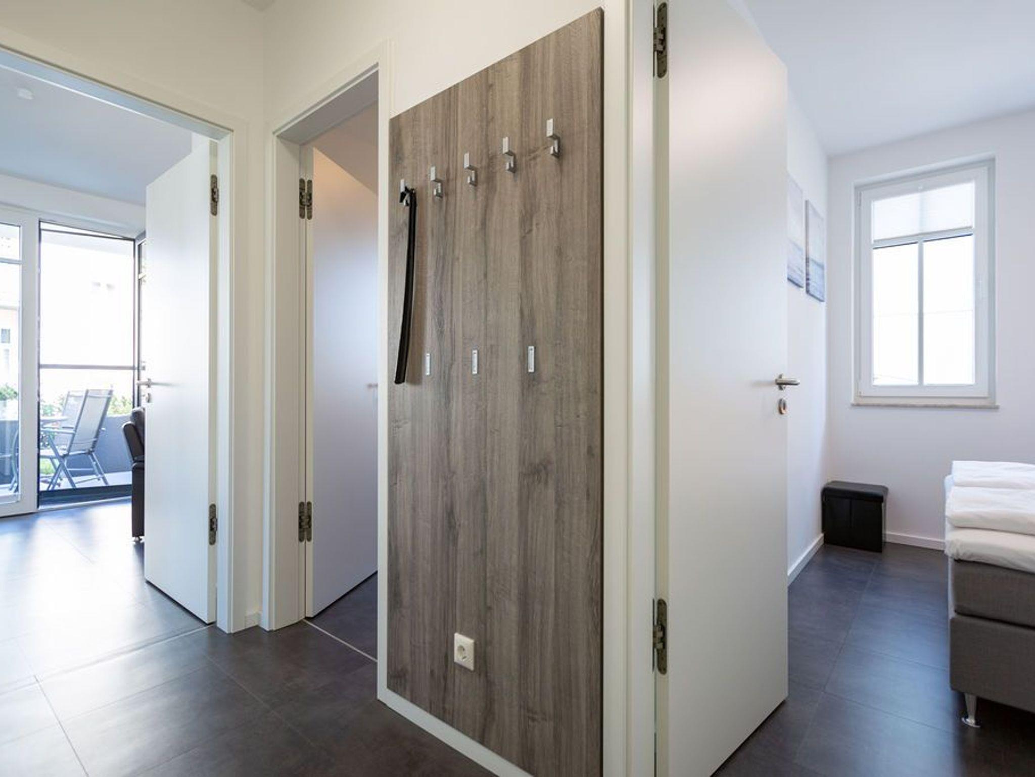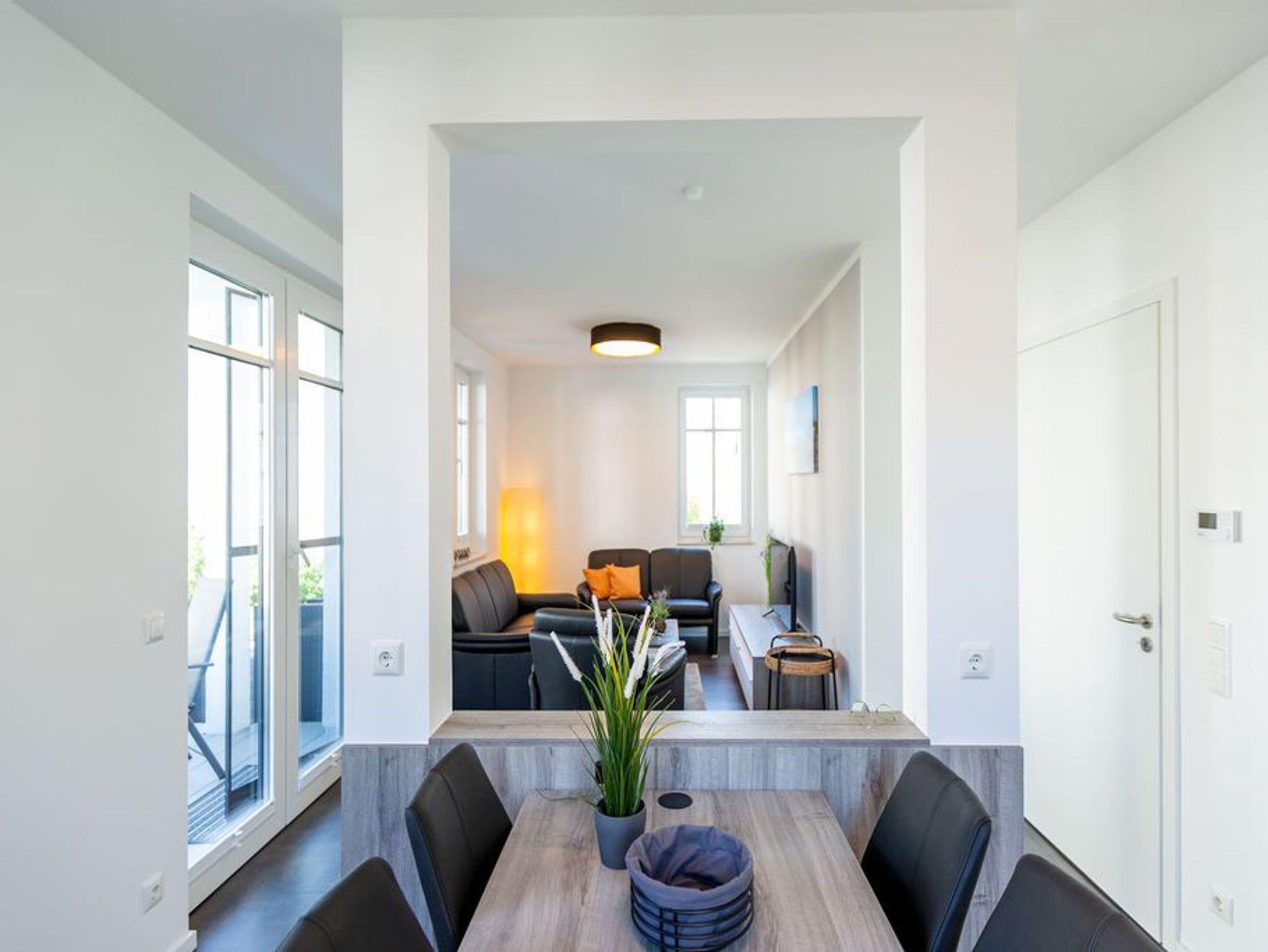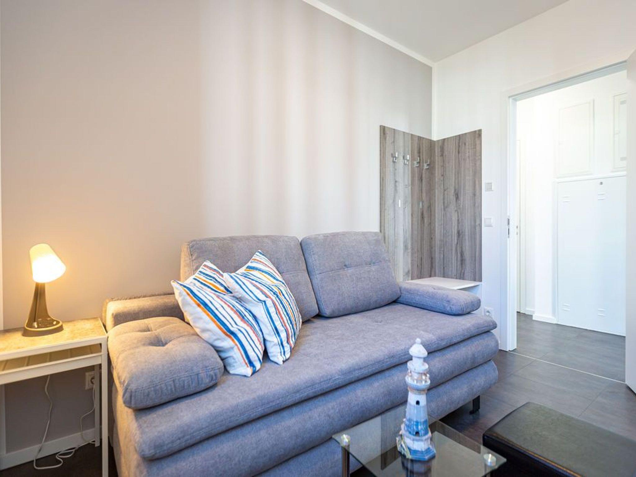 Dieses kleine, aber feine Appartement für zwei bis drei Personen und ein Kleinkind (bis 2 Jahre im Kinderreisebett) ist der ideale Ort für alle, die ein helles, modernes Domizil für ihren Usedom-Urlaub suchen. Hier ist Wohlfühlen auf 59 Quadratmetern garantiert. Das sich im Erdgeschoss befindliche Appartement bietet Zugang zu einer 6 Quadratmeter großen Nord-Ost-Terrasse, die Sie mit Gartenmöbeln für bis zu 4 Personen empfängt. Der Wohnbereich des 3-Raum-Appartements überzeugt durch eine helle und offene Gestaltung. Der perfekte Ort, um nach einem ausgiebigen Strandtag auf der gemütlichen Sofalandschaft vor dem Flat-TV zu entspannen. Die an das Wohnzimmer angrenzende moderne Küche lässt beim Zubereiten Ihrer Speisen keine Wünsche offen. Ob Induktionskochfeld, Backofen, Spülmaschine, Kühlschrank sowie Kleinküchengeräte (Kaffeemaschine, Toaster, Wasserkocher) - hier macht das Kochen auch im Urlaub Spaß. In diesem Appartement müssen Sie nicht auf erholsamen Schlaf verzichten. Das bequeme Boxspringbett (2,00 x 1,40m) im Hauptschlafzimmer lädt zum ausgiebigen Verweilen ein. Eine Schlafcouch (2,00 x 1,20m) wartet in einem weiteren Schlafraum auf eine mitreisende Person. Das wunderbar moderne Badezimmer mit Tageslicht verfügt über Waschtisch, Dusche und WC sowie einer Waschmaschine. Ihren geliebten Vierbeiner (max. Höhe 39cm und gegen Haustierendreinigung von 35,00 EUR) dürfen Sie ebenso mitbringen, wie Ihre Fahrräder, die in einem separaten Fahrradraum Unterstand finden. Ein PKW-Stellplatz in der hauseigenen Tiefgarage gehört ebenso zu diesem Appartement wie kostenfreies W-Lan. Bei Ihrer Anreise sind die Betten bereits bezogen und Handtücher liegen für Sie bereit.