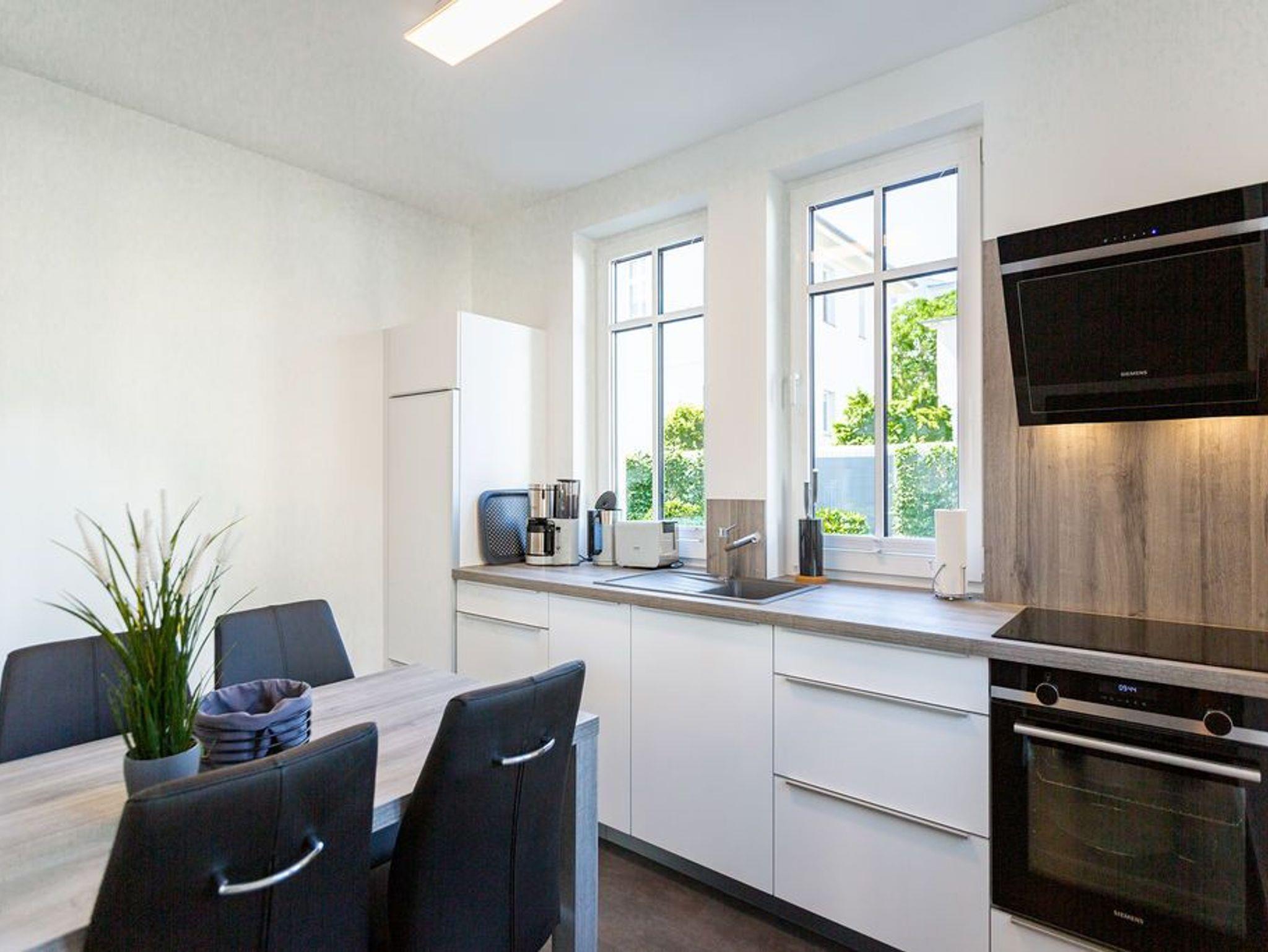 Urlaub mit Stil - Umgeben von wunderschönen, alten Bädervillen und mitten im Zentrum des Seebades Ahlbeck gelegen, befindet sich das neu gebaute Strandhaus nur einen Steinwurf weit vom feinen Sandstrand entfernt. 2021 erst fertig gestellt, bietet das Ferienareal mit seinen Appartements allen Urlaubs- und Wohnkomfort, den man sich für eine entspannte Ostsee-Auszeit nur wünschen kann. Die Nähe zum Strand und zur Promenade ist ideal. An manchen Tagen ist das Meeresrauschen bis hierher hörbar. Direkt vor der Haustür befindet sich der Kurpark mit dem Ahlbecker Rathaus. Selbst ein Stückchen neue Bäderarchitektur fügt sich der elegante Neubau wunderbar in seine Umgebung ein. Und so umweht das Feriendomizil das Flair der mondänen Kaiserzeit. Die Appartements sind großzügig geschnitten, luftig und hell und modern eingerichtet. Mit viel Liebe zum Detail wurde auf hochwertige Möbel und Accessoires geachtet. Vollausgestattete Küchen gehören ebenso zum Interieur wie komfortable Betten und ein stylisches Wohnraum-Design. Zudem hat jedes Appartement einen Stellplatz. Freuen Sie sich auf ein außergewöhnliches Domizil, aus dem Sie am liebsten gar nicht wieder ausziehen wollen. Erholung finden Sie hier ganz sicher.