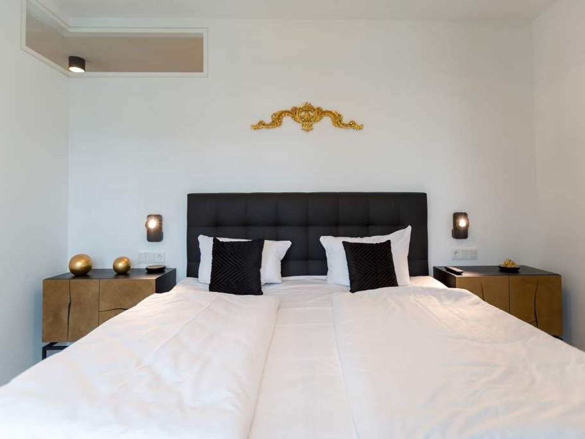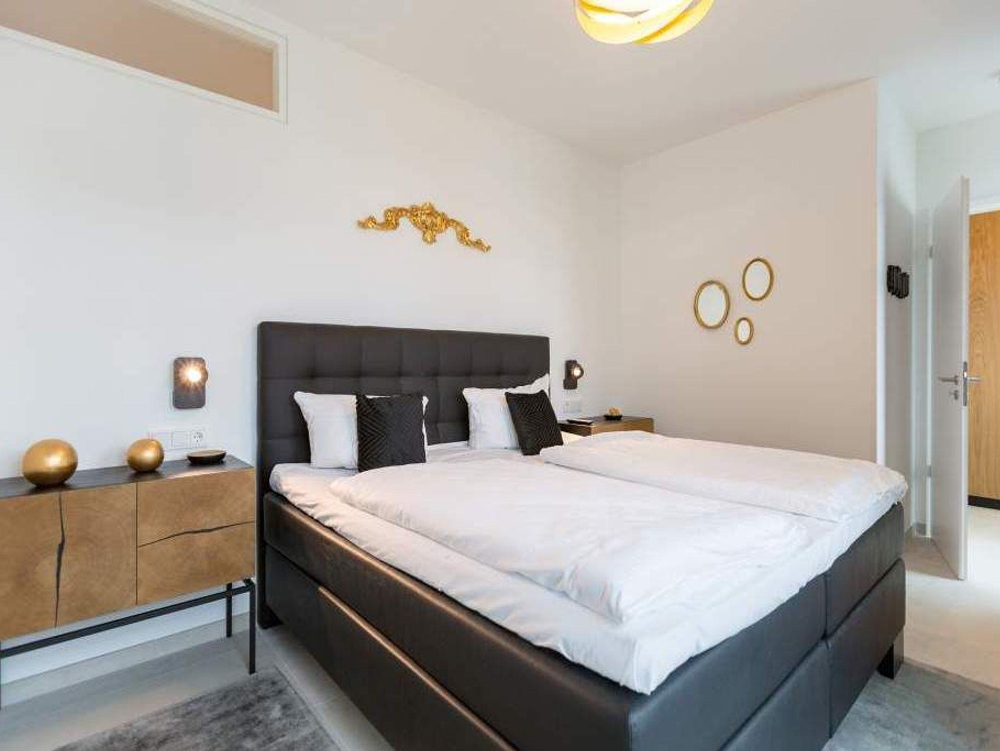 Im zweiten Oberschoss des Westendpalais zur Seeseite genießen Sie nicht nur einen herrlichen Blick auf die Ostsee, sondern es erwartet Sie zudem ein Luxusquartier. Konsequent, bis ins kleinste Detail durchdacht, offeriert sich Ihnen diese luxuriöse 2-Raum-Ferienwohnung auf großzügigen 70 qm (buchbar für 2 Personen [&] 1 Kleinkind bis 3 Jahre im Kinderreisebett). Eine Lounge von Rolf Benz, ein Essplatz von Molteni [&] C. mit Tonon Chairs, Stoffe von Gucci, Leuchten von Marchetti, Möbel von Lambert, Außenmöbel von Dedon, kombiniert mit auserlesenen Accessoires machen dieses Urlaubsnest zu einer Besonderheit. Für Multimedia ist gesorgt ? zwei große Flat-Screen-TV´s und Blue-Ray-Player lassen nichts vermissen. Der traumhafte Süd/Ost Balkon bietet Ihnen bereits zum Frühstück die Gelegenheit, die Kraft der Sonne zu tanken. Eine gemütliche Atmosphäre in der kalten Jahreszeit erweckt der Elektrokamin durch einen beruhigenden Blick in das Feuer. Das großzügige Schlafzimmer (abdunkelbar) mit Boxspring-Doppelbett inkl. Meerblick sogar im Liegen und die Diele mit geräumigem Einbauschrank befinden sich im westlichen Teil der Wohnung. Dieser Bereich wurde zusätzlich durch eine Glastür vom offenen Apartment abgetrennt und bietet Ihnen jederzeit die Möglichkeit zum Zurückziehen und Abschalten.[nbsp] Erleben Sie hier, wie unkompliziert und komfortabel sich das eigene Bad mit besonderen Wasseranwendungen zum Home Spa aufwerten lässt ? und so zu einem wesentlichen Bestandteil Ihrer persönlichen Gesundheits- und Wellness-Strategie wird. Durch das exklusive Konzept-Duschbad mit Dornbracht-Armaturen, Waterfall-Schwallbrause, Water-Points Seitenbrausen, großer ebenerdiger Walk-In Dusche, Keuco Design Badmöbeln, puristische Formen bei Waschtisch und WC und einer angrenzenden Sauna mit Farblichtanwendung möchten wir Ihre Urlaubserwartungen an Wellness und Gesundheit (Healthness) erfüllen. Zudem bieten wir Ihnen vital [&] köstlich exklusiv in diesem Appartement belebtes GRANDER Trinkwasser für mehr Lebensenergie und gesteigertes Wohlbefinden an. Für Ihren Komfort sind die Betten bei der Anreise bezogen und Handtücher liegen bereit. Ein überaus großzügiger Pkw-Stellplatz steht in der Tiefgarage zur Verfügung. Eine Waschmaschine in der Wohnung ist gegen Gebühr nutzbar. Auf Wunsch stellen wir ein Kinderreisebett (ohne zusätzliche Matratze [&] Bettzeug) und einen Kinderhochstuhl gegen einen Aufpreis zur Verfügung.