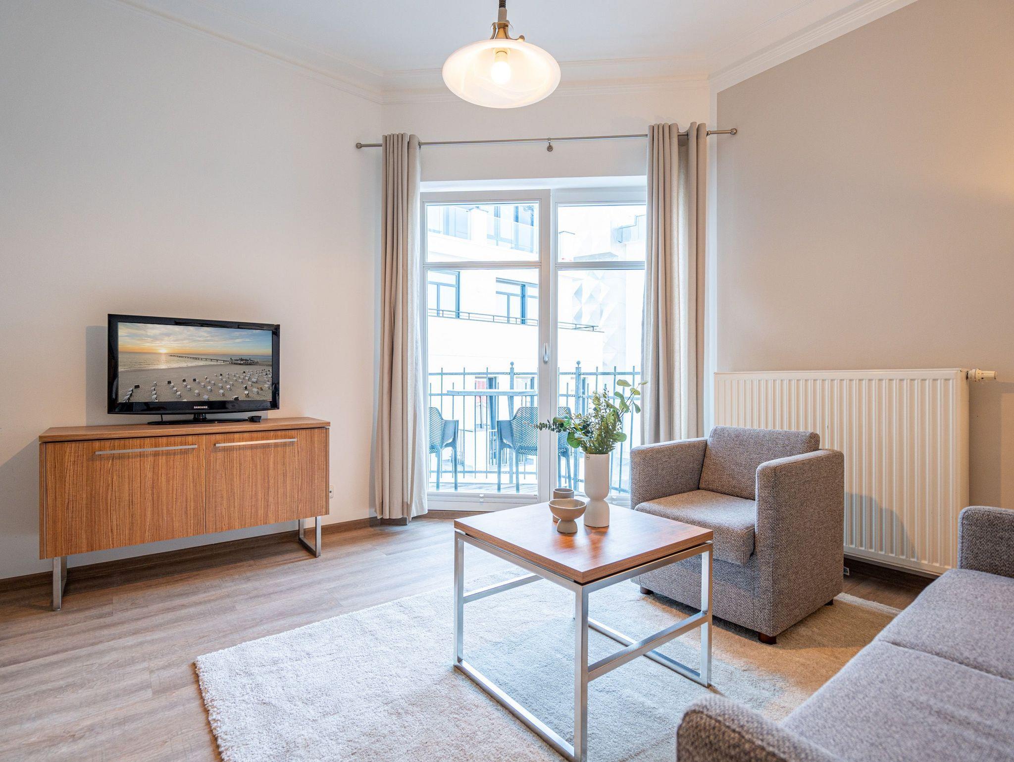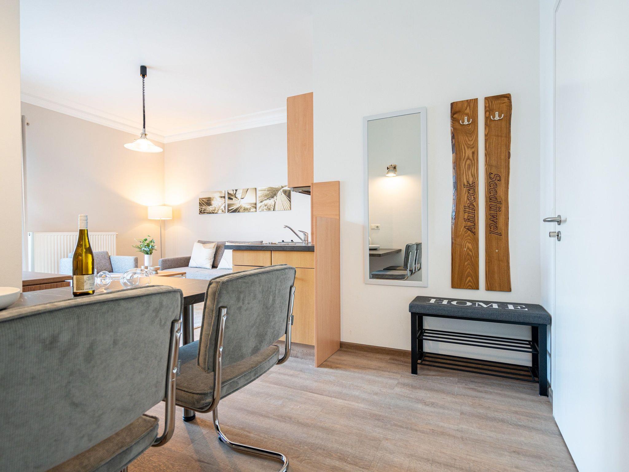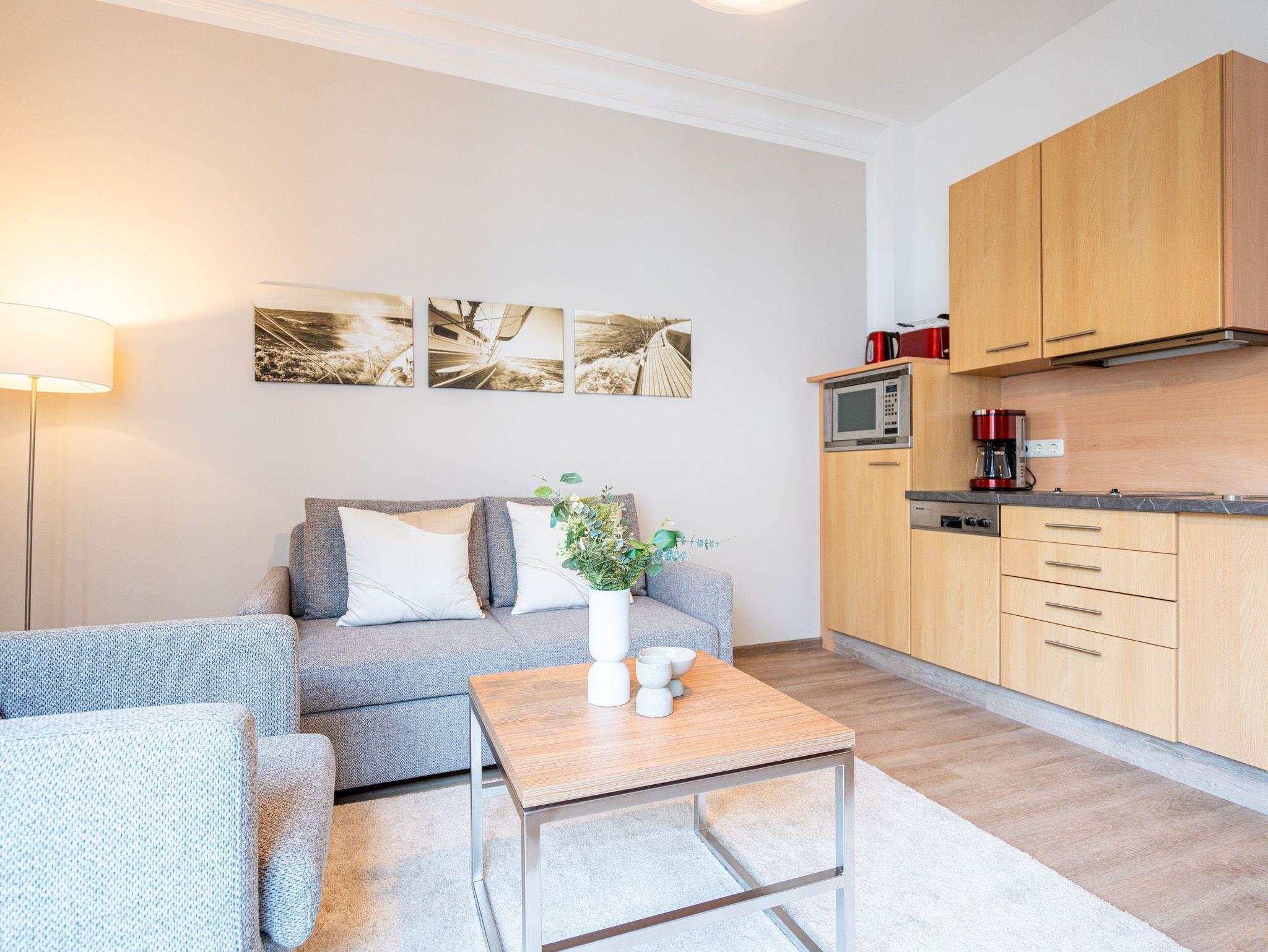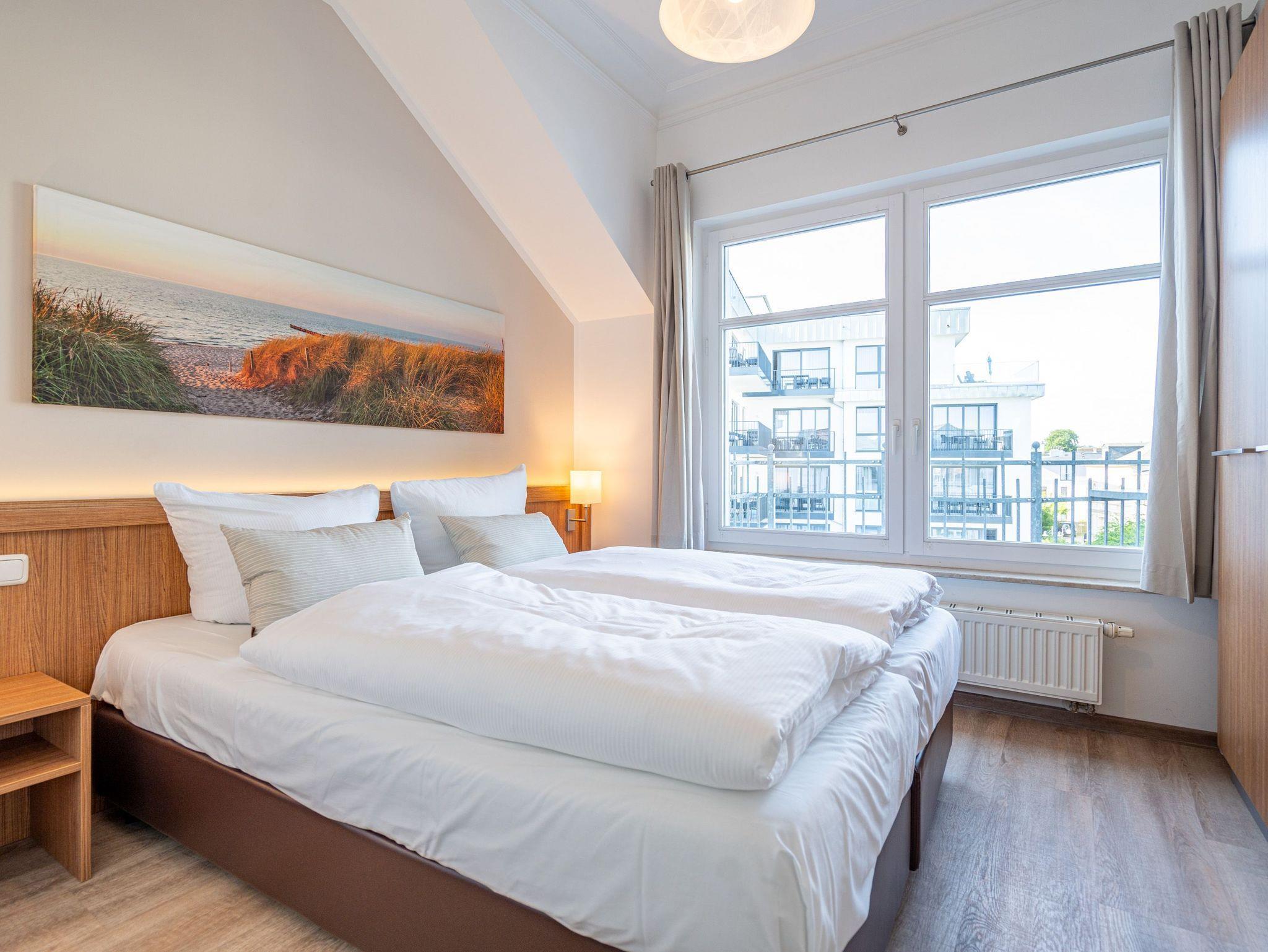 Die 2-Raum-Ferienwohnung Nr. C13 in der Villa Seedüwel bietet auf 38 qm komfortablen Platz für zwei Personen und befindet sich im 2. Obergeschoss. Der offene Wohnbereich ist mit einer gut ausgestatteten Küchenzeile versehen, die ein 2-Platten-Cerankochfeld, eine Mikrowelle und einen Kühlschrank mit Gefrierfach umfasst. Ein Essplatz für zwei Personen, eine gemütliche Sitzgruppe sowie ein Flat-TV vervollständigen das Wohnzimmer. Von hier aus gelangen Sie auf den sonnigen Süd-Ost-Balkon. Das Schlafzimmer ist mit einem Doppelbett (1,60 m x 2,00 m) und einem Kleiderschrank ausgestattet. Das innenliegende Bad verfügt über eine Dusche und ein Waschbecken, zudem gibt es ein separates WC. Ein Stellplatz in der Tiefgarage ( Einfahrthöhe 2,03m) des benachbarten Hauses „Strandterrasse“ ist für Sie reserviert. WLAN steht Ihnen kostenfrei zur Verfügung.