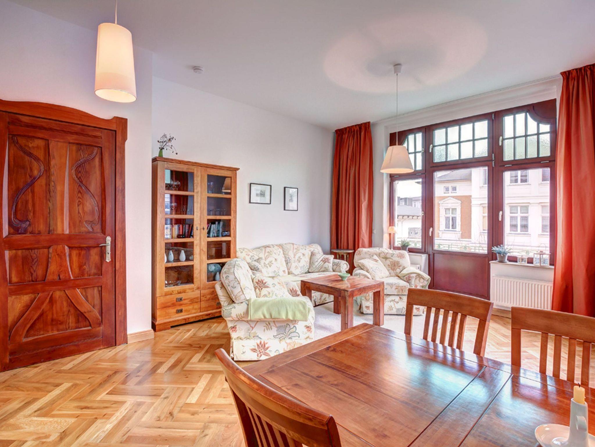 Eine traumhafte Ferienwohnung, ca. 100 m vom Ostseestrand entfernt, lädt zum Urlaub mit Wohlfühleffekt ein! In einer hübsch sanierten Gründerzeitvilla finden Sie im 1. OG eine liebevoll ausgestattete 2-Raumwohnung (ca. 57 qm), WLAN inklusive. Ein idealer Ort, um in den Kaiserbädern Urlaub zu machen. Wenn Sie kurze Entfernungen zur Flaniermeile wie auch zum Ostseestrand schätzen, dann sind Sie hier bestens aufgehoben.