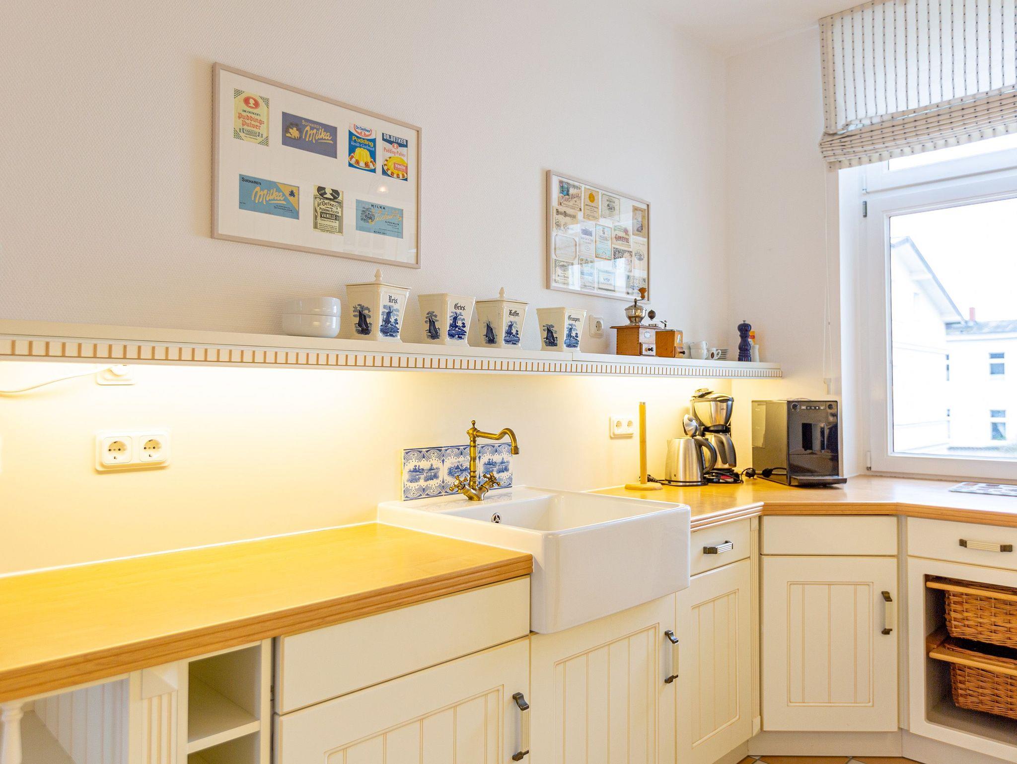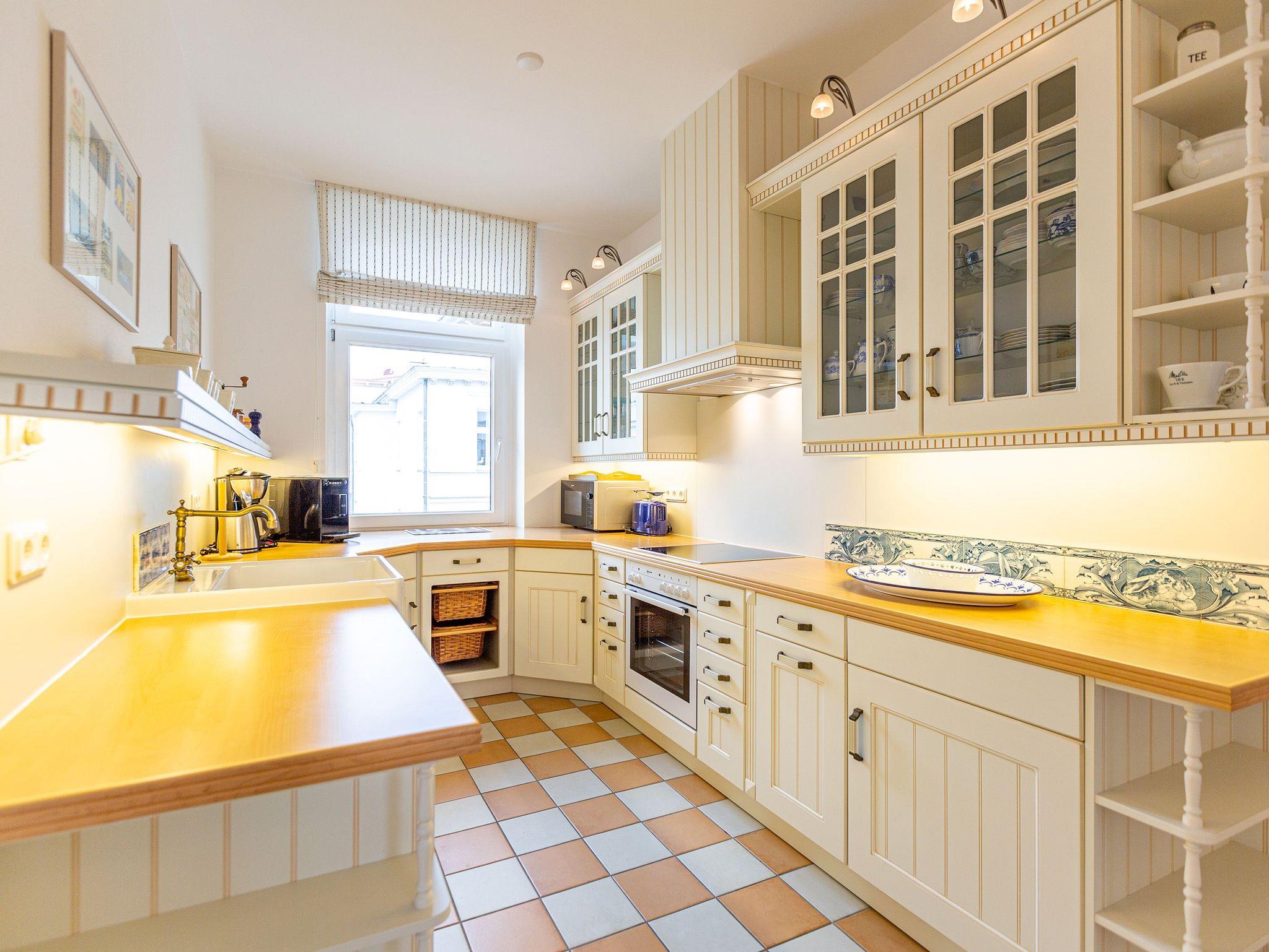 Näher an der Ostsee wäre nur noch im Wasser selbst. Im Haus Meerblick ? einer wunderschönen, alten Bädervilla vom Ende des 19. Jahrhunderts ? gehört die Ostsee zum Inventar dazu. Ob als Rauschen oder im Blick: Meer macht glücklich. Erst recht, wenn zum Meergenuss das Wohnen in einem glücksfördernden Ambiente hinzukommt. Die Erholung entsteht da von ganz alleine. Der sanierte Altbau und der Neubau mit Tiefgarage bieten alles, was Sie sich von einem Traumdomizil an der Ostsee nur wünschen. Die Appartements sind elegant und mit viel Geschmack eingerichtet. Moderner Wohnkomfort trifft hier auf mondänen Kaisercharme. Zumal das Haus Meerblick gleich an der Strandpromenade liegt, nur einen Katzensprung von der Düne und den sanft rauschenden Wellen entfernt. Durch seine exponierte Lage wird es zum Ausgangspunkt für Erkundungstouren mit dem Rad oder zu Fuß. Zur Ausstattung der Appartements gehört eine Wohnküche mit hochwertigen Geräten dazu.