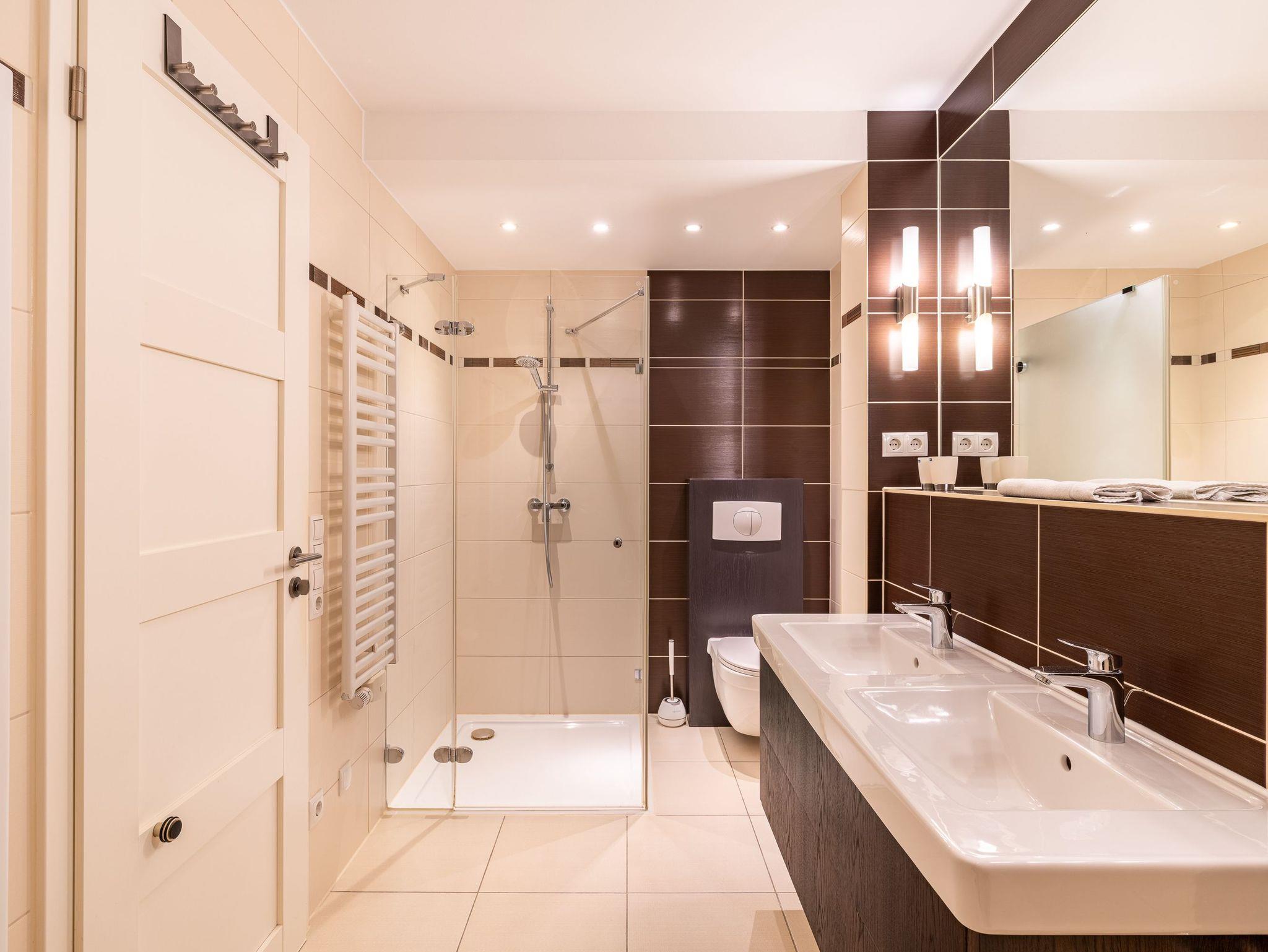 Damit Sie Ihre wohlverdiente Urlaubszeit bereits am Anreisetag in vollen Zügen genießen können, haben wir das Bett für Sie und das für Ihre lieben Mitreisenden bereits bezogen und ein Duschtuch sowie ein kleines Handtuch bereitgelegt. Das Appartement besitzt ein luxuriöses und großzügiges Badezimmer mit WC und einem Haartrockner - nach Belieben können Sie sich in der Echtglas-Dusche erfrischen oder in der Badewanne entspannen.