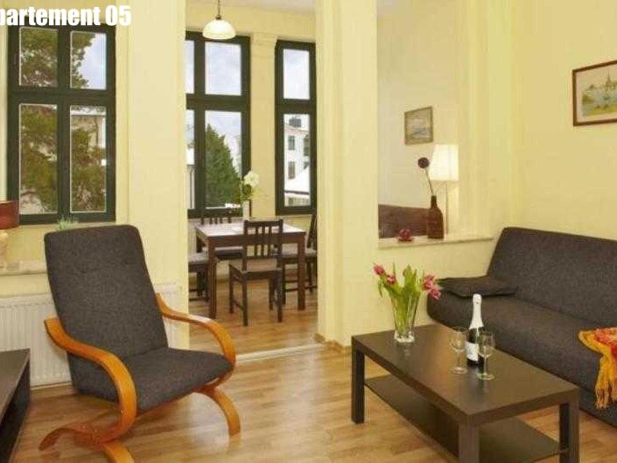 Die komplett neu und modern eingerichtete 2- Raum- Wohnung ( 65 qm) befindet sich im 1. OG der Villa Ostpreussen. Die Wohnung ist mit einem grossen LED Fernseher, einer kompletten Küche und einer Veranda ausgestattet. Im Schlafzimmer befindet sich ein Doppelbett, eine zusätzliche Aufbettung ist möglich. Das Wohnzimmer verfügt über eine Schlafcouch. In der Veranda ist eine Essecke.