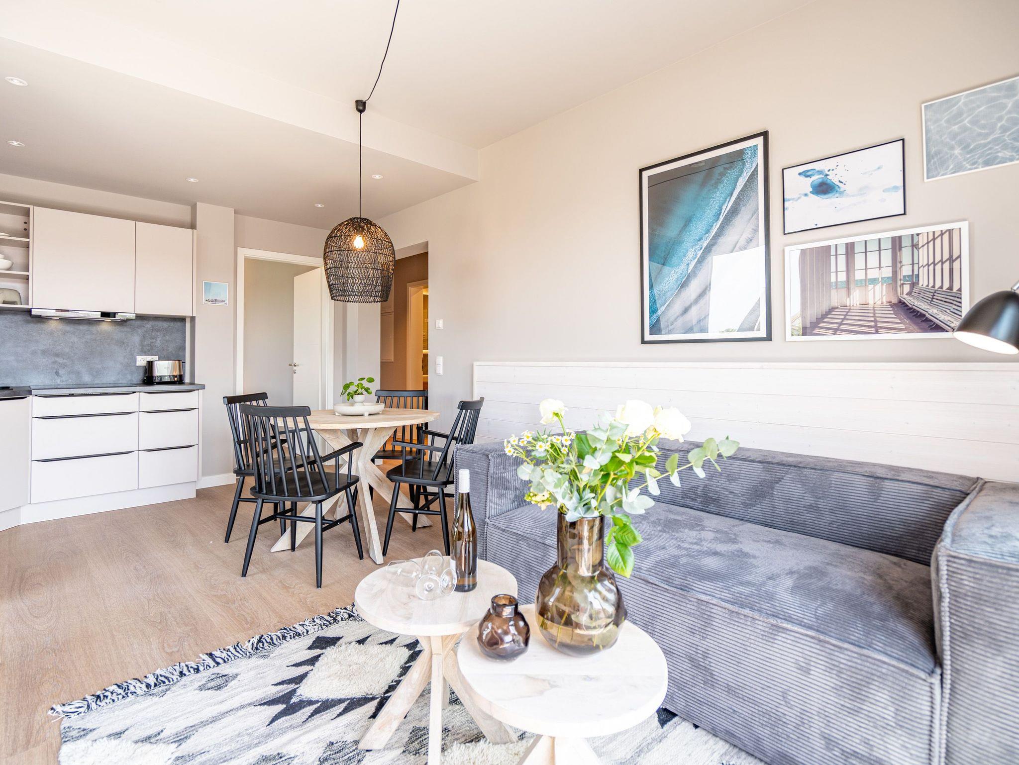 Genießen Sie entspannte Tage direkt an der Ostsee in der stilvoll eingerichteten Strandterrasse Wohnung mit Balkon und Meerblick.