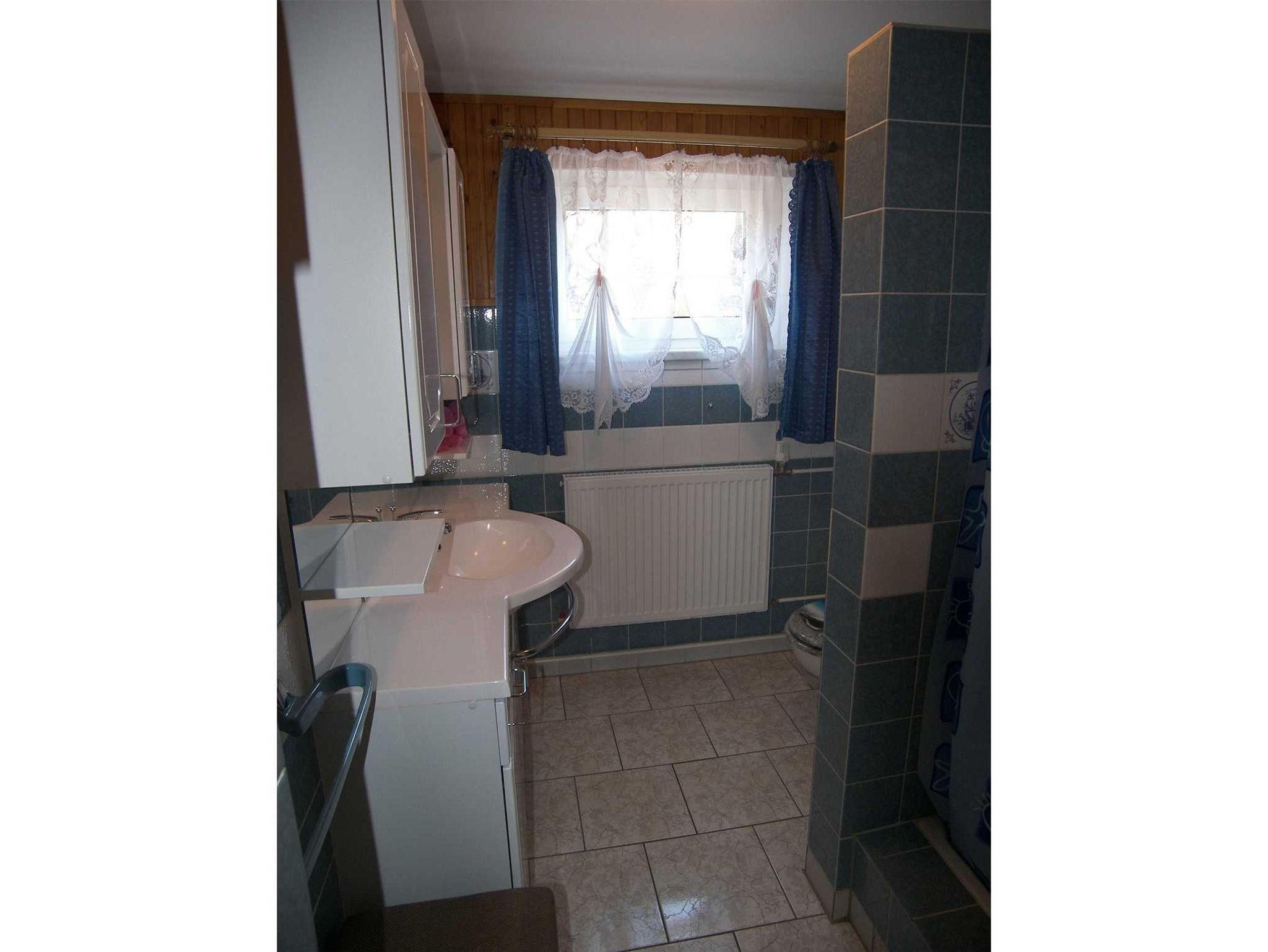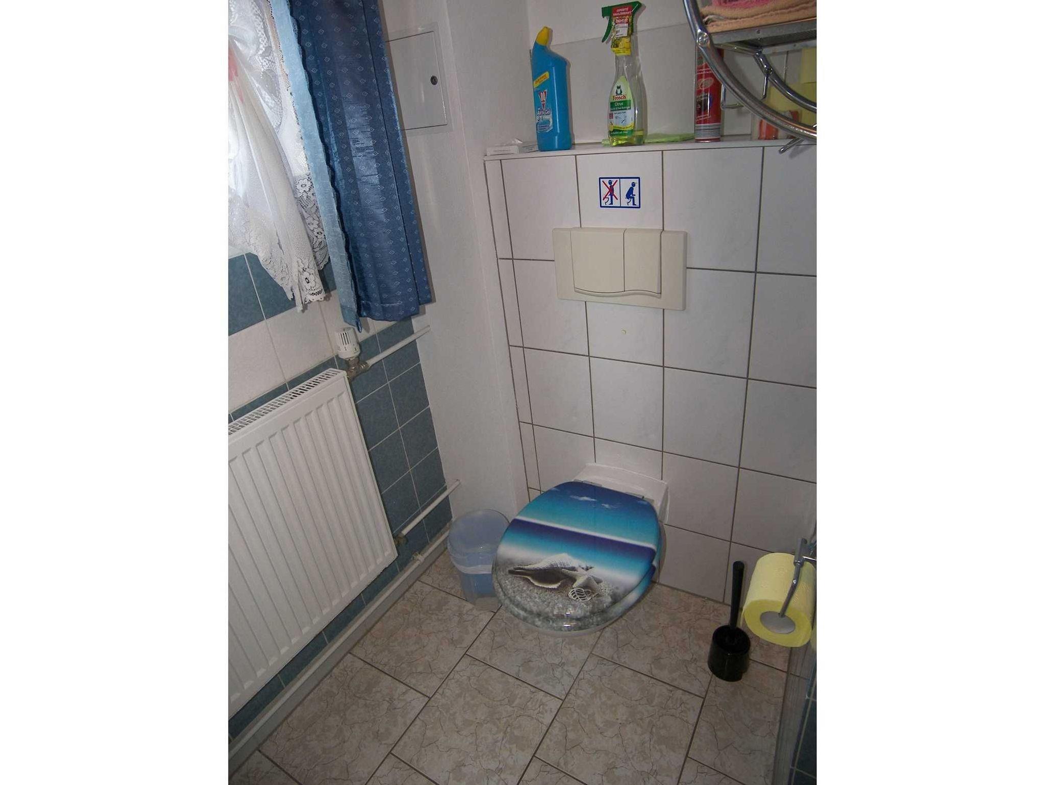 Das Badezimmer verfügt über ein WC und eine Dusche mit kleinem Einstieg, sodass Sie sich bequem frisch machen können.