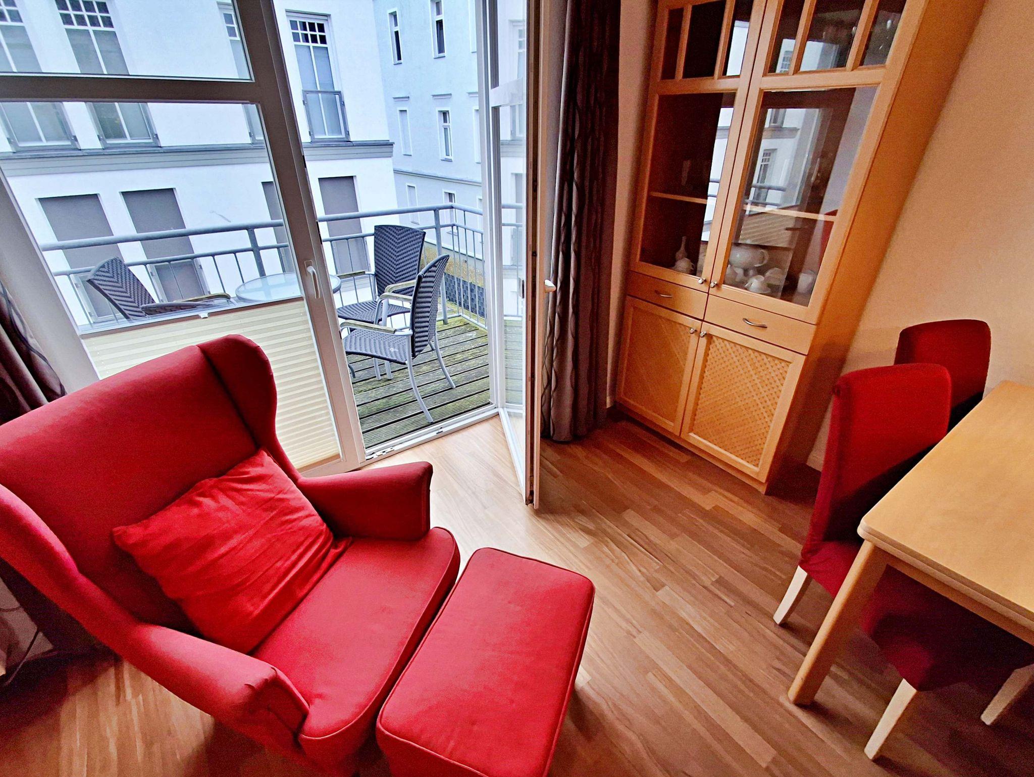 Die freundliche 3-Zimmer-Wohnung Uferschnepfe im 2. Oberschoss mit Balkon für max. 4 Erwachsene und 1 Kind bis 14 Jahre befindet im Nebengebäude der stilvoll restaurierten Villa Ahlbeck - nur wenige Schritte von der Promenade und dem Strand entfernt. Im Wohnbereich befinden sich neben der gemütlichen Couch auch ein Sessel mit passendem Fußhocker sowie ein Esstisch mit 4 Stühlen. Das Highlight der Wohnung ist der Balkon in Nord-Ost-Ausrichtung, wo Sie bei schönem Wetter bereits morgens Ihren Kaffee genießen oder den Abend bei einem Glas Wein ausklingen lassen können. Die moderne Küchenzeile mit Ceranherd, Backofen, Geschirrspüler, Mikrowelle, Kaffeemaschine, Wasserkocher und Toaster lässt keine Wünsche offen. Für die Unterhaltung sorgen ein Flachbild-TV, Radio-CD-Player und kostenfreies W-LAN. Die beiden Schlafzimmer verfügen jeweils über ein Doppelbett und das Badezimmer hat DU/WC.