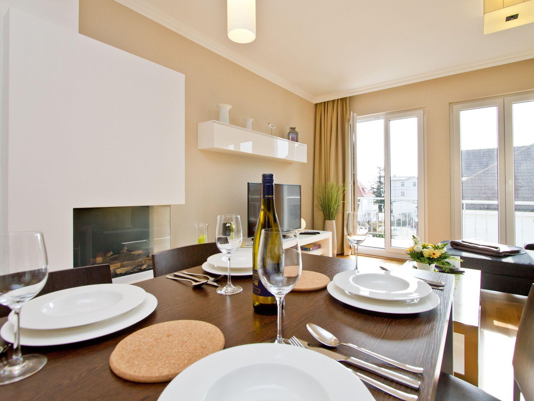 Moderne 3-Raum-Ferienwohnung mit Gaskamin und großem Balkon nahe Strand und Zentrum in Ahlbeck.