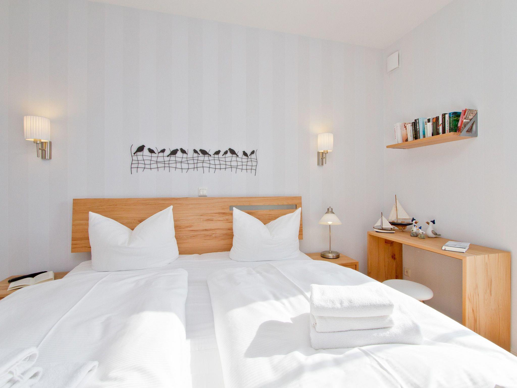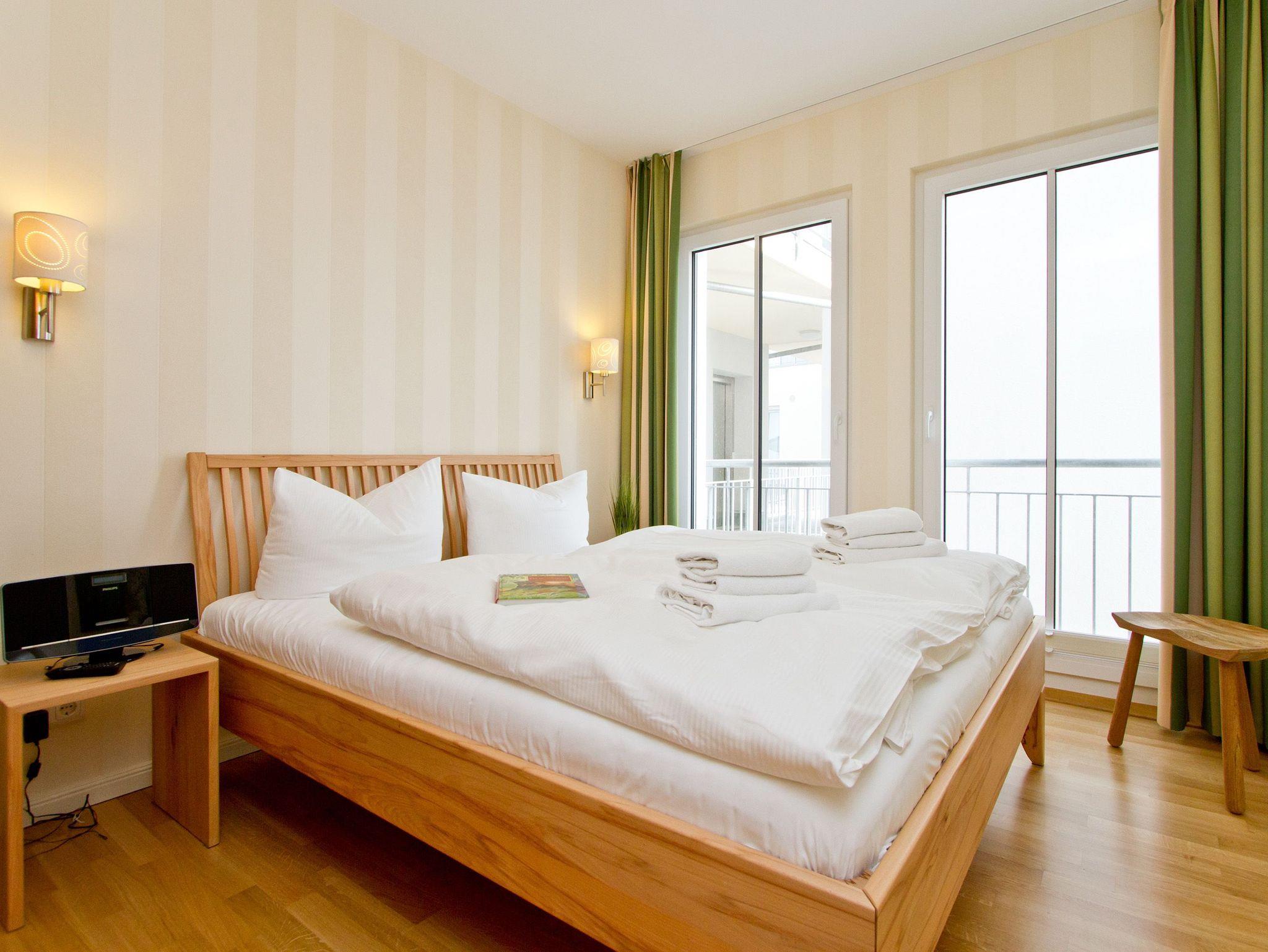 Im 2. Obergeschoss des Südhauses befindet sich diese schöne 3-Raum-Ferienwohnung für 4 Personen (inklusive Kleinkind bis 2 Jahre). Helle Räume, passend abgestimmte Farben und Stoffe und eine moderne, aber gemütliche Einrichtung werden Sie hier begeistern. Der Wohnbereich ist mit einer bequemen Sitzgruppe ausgestattet und wird ergänzt durch die komplett ausgestattete Küchenzeile mit Essplatz. Ein besonderes Highlight ist der per Fernbedienung bedienbare Gaskamin. Die beiden Schlafzimmer sind mit schönen Holzmöbeln eingerichtet. Metallfreie Doppelbetten unterstützen hier erholsamen Schlaf. Das helle Bad verfügt über eine große Echtglasdusche, Waschtisch, Bidet und ein WC. Im Hauswirtschaftsraum finden Sie eine Waschmaschine. Ein großer Ostbalkon lädt zum Frühstücken ein, von hier genießt man bis zum frühen Nachmittag die Usedomer Sonne. Das Blu-Ray-Heimkinosystem lässt aber auch Regentage wie im Flug vergehen. Gern können Sie den kostenfreien, wohnungseigenen DSL-Anschluss mit LAN und WLAN-Funktionalität nutzen. Für Ihren Komfort steht die Erstausstattung Wäsche für Sie bereit. Auf Wunsch stellen wir ein Kinderreisebett (ohne Matratze [&] Bettzeug) und einen Kinderhochstuhl gegen einen Aufpreis zur Verfügung. Ein Pkw-Stellplatz ( Nr.15) befindet sich in der Tiefgarage des Hauses.