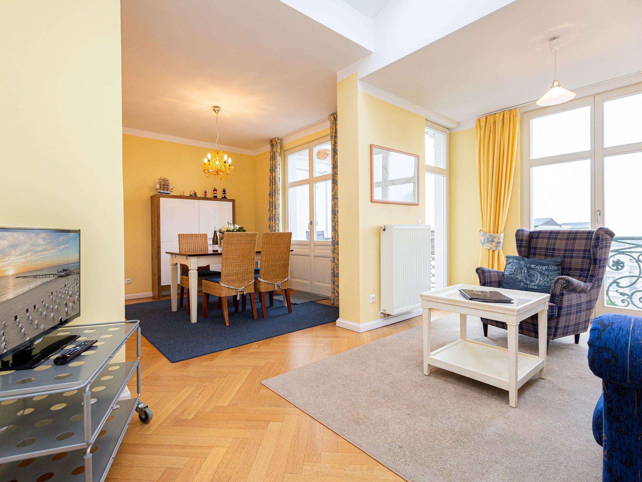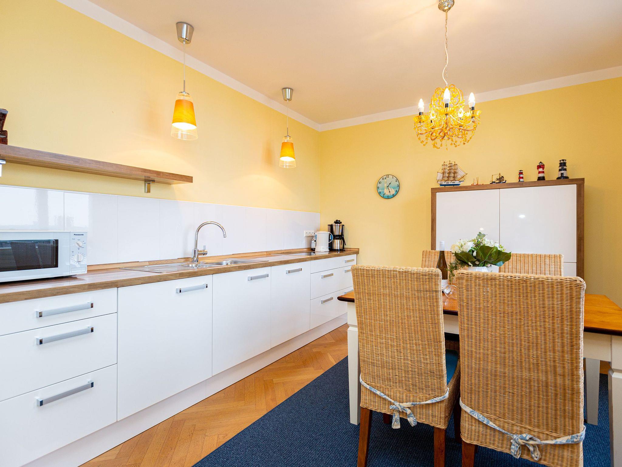 Mit diesem Domizil entscheiden Sie sich für eine exklusive Möglichkeit, Ihren Urlaub in den Kaiserbädern zu verbringen. Die 1898, im wilhelminischen Baustil errichtete Villa, präsentiert Ihnen seit Januar 2005 hochherrschaftliches Wohnen in ruhiger Lage. Großzügige Räumlichkeiten, historische Veranden und Balkone sorgen für rundherum gelungene Urlaubstage. Der große Saunabereich (kostenfrei) im Untergeschoss der Villa bietet Ihnen an kälteren Tagen eine angenehme Abwechslung. Für jede Wohnung steht ein PKW-Stellplatz am Haus zur Verfügung (größtenteils überdacht), für Fahrräder gibt es teilweise separate Abstellräume (abschließbar). Waschmaschine und Trockner (im Untergeschoss) im Haus sind gegen eine Gebühr nutzbar. Das WLAN-Netz steht kostenfrei zur Verfügung.