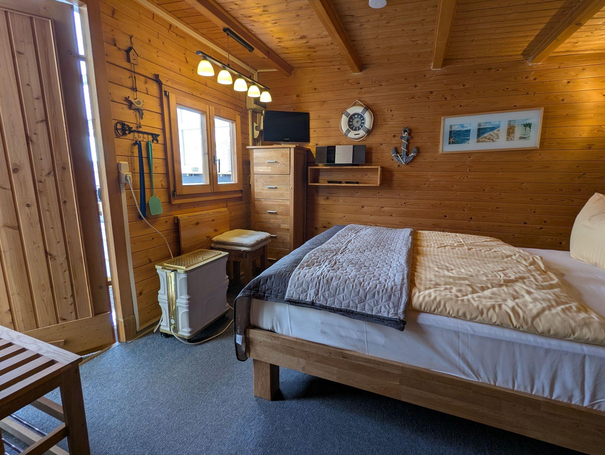 Der Bungalow ist einfach eingerichtet. Wohnraum mit einem Doppelbett (140 cm x 200 cm) für 2 Personen TV und Radio, Küchenzeile im Wintergarten, Kaffeemaschine, Toaster und Wasserkocher, separater Eingang, möblierter Wintergarten, Grillmöglichkeit, incl. Bettwäsche, Parkplatz am Haus, Waschmaschine und Trockner im Geräteraum nutzbar, Duschbad, 700 qm großes sonniges Grundstück.