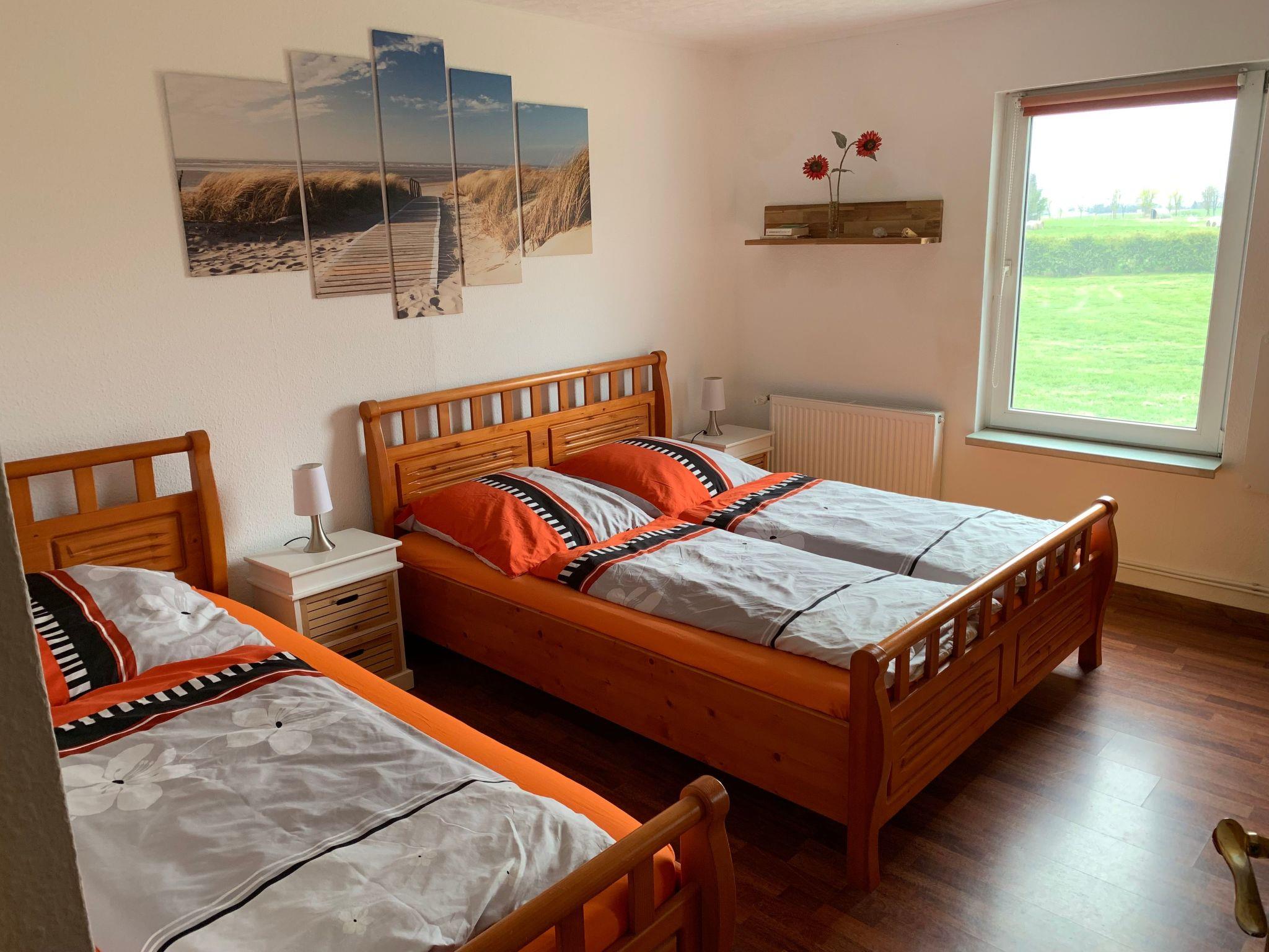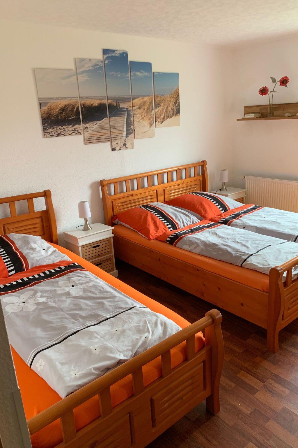 Die Wohnung hat eine Größe von ca. 85 qm und ist für bis zu 5 Personen geeignet. Insgesamt stehen zwei Schlafzimmer und ein Badezimmer mit Dusche zur Verfügung. Die Küche ist voll ausgestattet mit Kühl-Gefrier-Kombination, Geschirrspüler, Mikrowelle, E-Herd mit Cerankochfeld, Dunstabzug, Toaster, Wasserkocher, Kaffemaschine. Der Wohnzimmerbereich ist mit Flachbildschirm (Sat-TV ) Radio/ CD und einem Kaminofen ausgestattet. Das 1. Schlafzimmer verfügt über ein Doppelbett, 2 Kommoden und einen großen Schrank. Das 2. Schlafzimmer ist mit einem Doppelbett, einem Einzelbett und einem Schrank ausgestattet. Im Flur befinden sich Ablagen für Schuhe und Jacken.