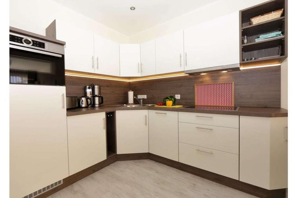 Helle Ferienwohnung mit Meerblick, Terrasse, Sauna und Tiefgaragenstellplatz in Ahlbeck.