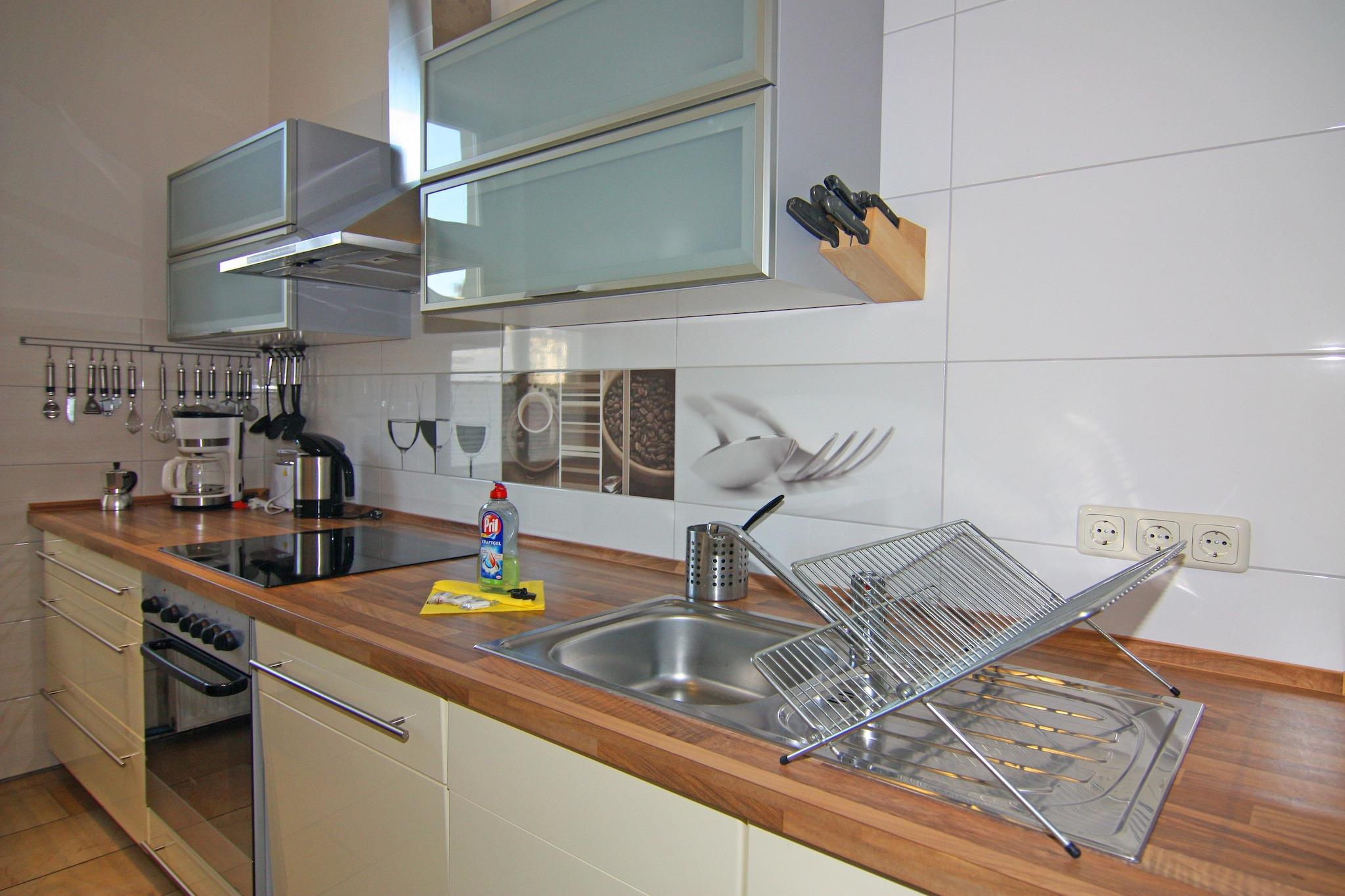 In der 1. Etage: (Küche(TV, Esstisch(3 Personen), Wasserkocher, Toaster, Kochherd(4 Kochplatten, Ceranfeld), Dunstabzugshaube, Kaffeemaschine, Backofen, Mikrowelle, Spülmaschine, Kühl-/Gefrierkombination), Wohn/Esszimmer(TV(Satellit), Radio, CD-Spieler), Schlafzimmer(Doppelbett, TV), Schlafzimmer(Doppelbett, TV), Badezimmer(Whirlwanne, Dusche, Waschbecken, Toilette, Waschmaschine, Föhn), Flur, Veranda) Sauna(Gemeinschaftliche Nutzung mit dem Eigentümer und anderen Gästen ), Zentraler Grill, Heizung(Zentral), Parkplatz, Babybett (kostenlos), Handtücher/Bettwäsche (extra Gebühr)