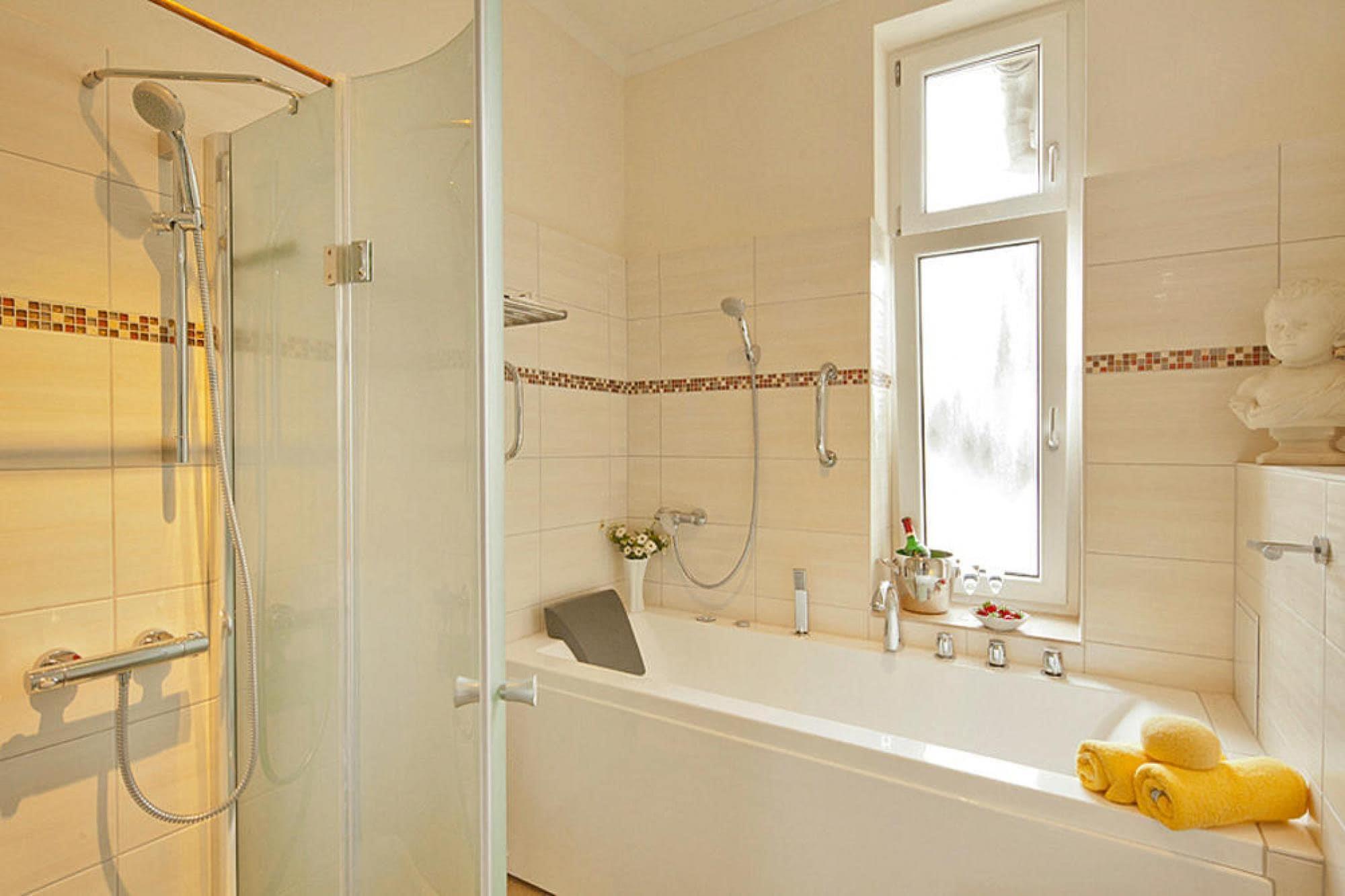 Besonders attraktive gelegene Ferienwohnung in der Villa See-Eck nur 60 m vom wunderschönen Sandstrand von Ahlbeck entfernt. Diese bezaubernde Ferienwohnung liegt im 1. Stock und punktet in vielerlei Hinsicht. Sie ist komplet saniert und bietet den Gästen sehr viele luxuriöse Annehmlickeiten. Ein Highlight ist die gemeinsame Außensauna, die Sie als Gast des Hauses kostenlos benutzen können, sowie einen Grillplatz. Das Badezimmer punktet mit einer schicken Whirlwanne. Die modern eingerichtete Küche lädt ein, ein tolles Essen zuzubereiten nach einem erholsamen Tag am Strand. Die hellen und lichtduchfluteten Räume verleihen diesem Urlaubsdomizil einen zusätzlichen Wohlfühlcharakter. Die beliebte Seebrücke ist von hier übrigens ganz schnell erreicht - nur wenige Gehminuten trennen Sie vom Wahrzeichen des Ortes mit seinem Restaurant und dem herrlichen Ausblick. Ahlbeck ist eines der 3 sogenannten Kaiserbäder auf Usedom. Hier verbinden sich Bade- und Schlemmerurlaub ganz wunderbar mit Entdeckertouren durch die herrliche Natur der Insel. Ein Hinweis für unsere Gäste: Das Wäschepaket ist bei Bedarf kostenpflichtig vorab zu buchen. Highlights inklusive: Alle verbrauchsabhängigen Energiekosten und Endreinigung WLAN 1 Flasche Sekt bei Ankunft zur Begrüßung 1 kostenloser Pkw-Stellplatz Saunanutzung (Gemeinschaftssauna) Aktivitäten in der Nähe: Im 50 m entfernten "Das Ahlbeck Hotel Spa" können Sie Sauna, Wellnessangebote und Frühstück gegen Gebühr buchen. Sehenswert: Die historische Ahlbecker Seebrücke und die imposanten Villen im Stil der klassizistischen Bäderarchitektur, die Sie entlang der parallel zur Strandpromenade verlaufenden Dünenstraße finden. Zentral in den drei Kaiserbädern Ahlbeck, Heringsdorf und Bansin liegt das beliebte Schwimmbad Ostseetherme, das Wellness und Badespaß für Groß und Klein bietet. Besuchen Sie die neueste Attraktion in Heringsdorf - den in 2021 neu eröffneten Baumwipfelpfad mit tollen Aussichten. Fahren Sie mit der UBB (Bäderbahn) von Peenemünde bis Swinemünde über die Sonneninsel Usedom. Die Kurtaxe beinhaltet die Nutzung der Usedom-Card.