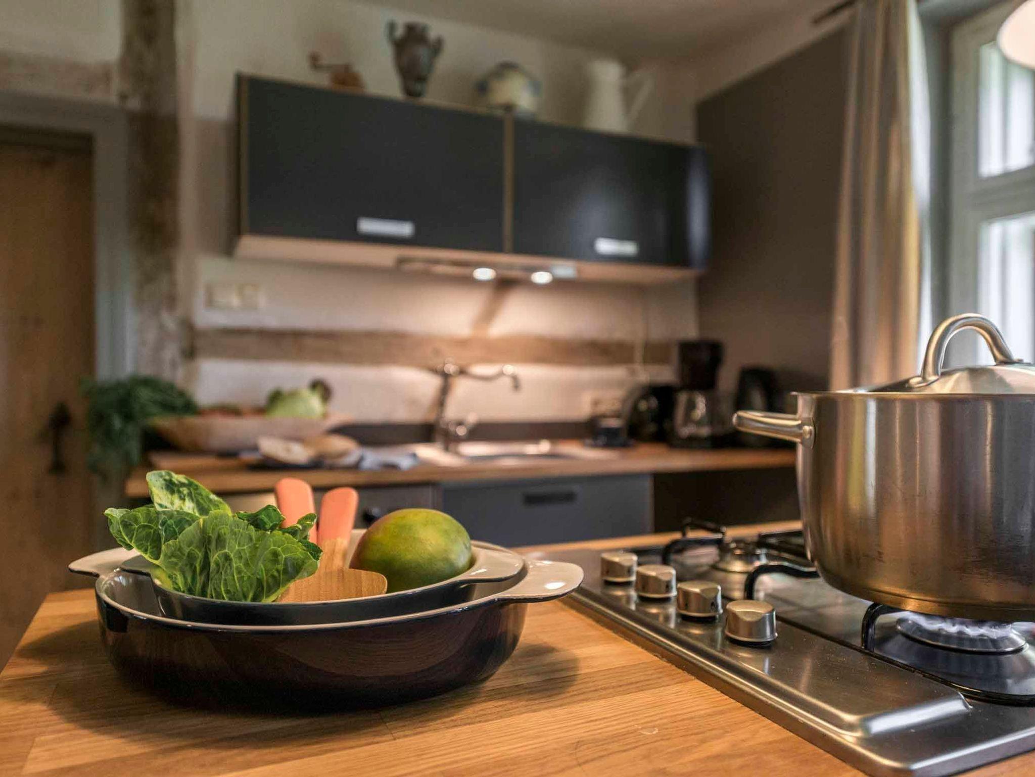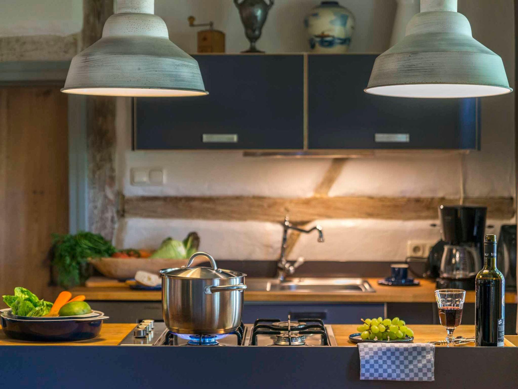 Haben Sie schon einmal Ihren Urlaub in einem 250 Jahre alten Haus verbracht? Lieben Sie blankgegriffene Türklinken, tiefe Balkendecken, die Struktur handgeformter Lehmwände, das Spiel von Licht und Schatten auf gelaugten Dielen und antiken Möbeln? Dann lassen Sie sich von fast 100m² Geschichte im Colonistenhaus verzaubern. Bei unserem mit viel Liebe sanierten Fachwerkhaus aus dem Jahr 1757 wurde ganz besonders darauf geachtet, den ursprünglichen Charme eines historischen pommerschen Gebäudes zu bewahren und dabei viel Wert auf ökologische Materialien wie Lehm, Holz und Naturfarben gelegt. So haben wir das Haus mit der für diese Häuser typischen Holzfassade aus heimischer Fichte versehen. Das Dach wurde 2016 mit wunderbaren, historischen Tonziegeln eines Abbruchgebäudes im Nachbardorf neu gedeckt. Die zum Teil noch barocken Kastenfenster wurden aufwendig restauriert oder da wo möglich durch helle, bodentiefe Fenstertüren komplettiert, sodass direkte Zugänge zur umlaufenden großen Holzterrasse geschaffen wurden. Die urgemütliche Atmosphäre der Räume, mit niedrigen Balkendecken, edlen Tapeten und Zementfliesen, Fachwerkwänden, den antiken Schränken und Kommoden wird Sie verzaubern. Hier sorgt ein antiker Lübecker Kachelofen im Winter für wohlige Wärme. Außerdem wurde eines der beiden Schlafzimmer mit einem gusseisernen Franklin Ofen ausgestattet, der hier nun auf Wunsch für ausgesprochen romantische Abende sorgt.