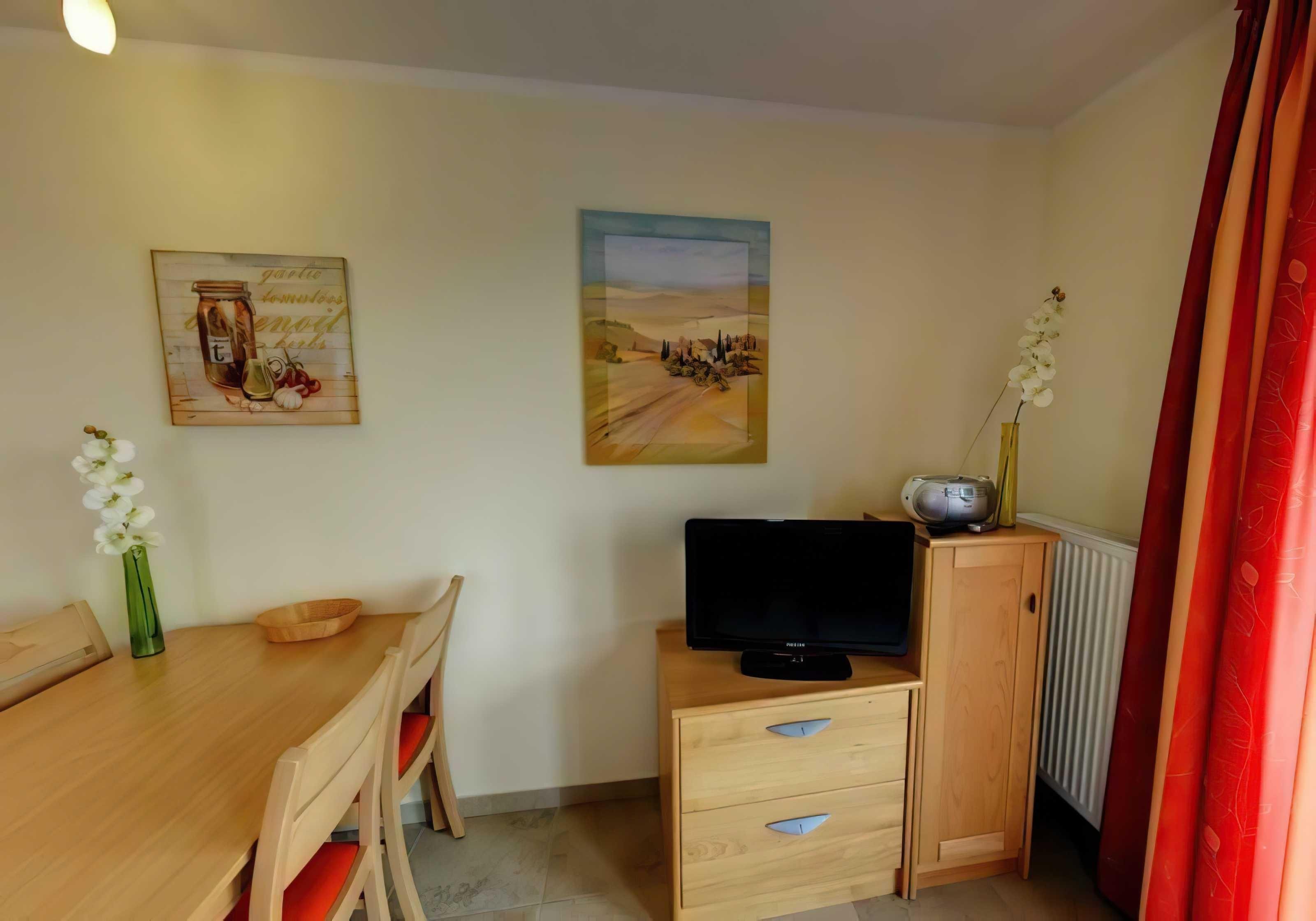 Die Wohnungen im Obergeschoss (mit einer Größe von jeweils 52 m²) für 2 Personen [nbsp]sind durch ihre Hanglage fast ebenerdig und über wenige Stufen zu erreichen.