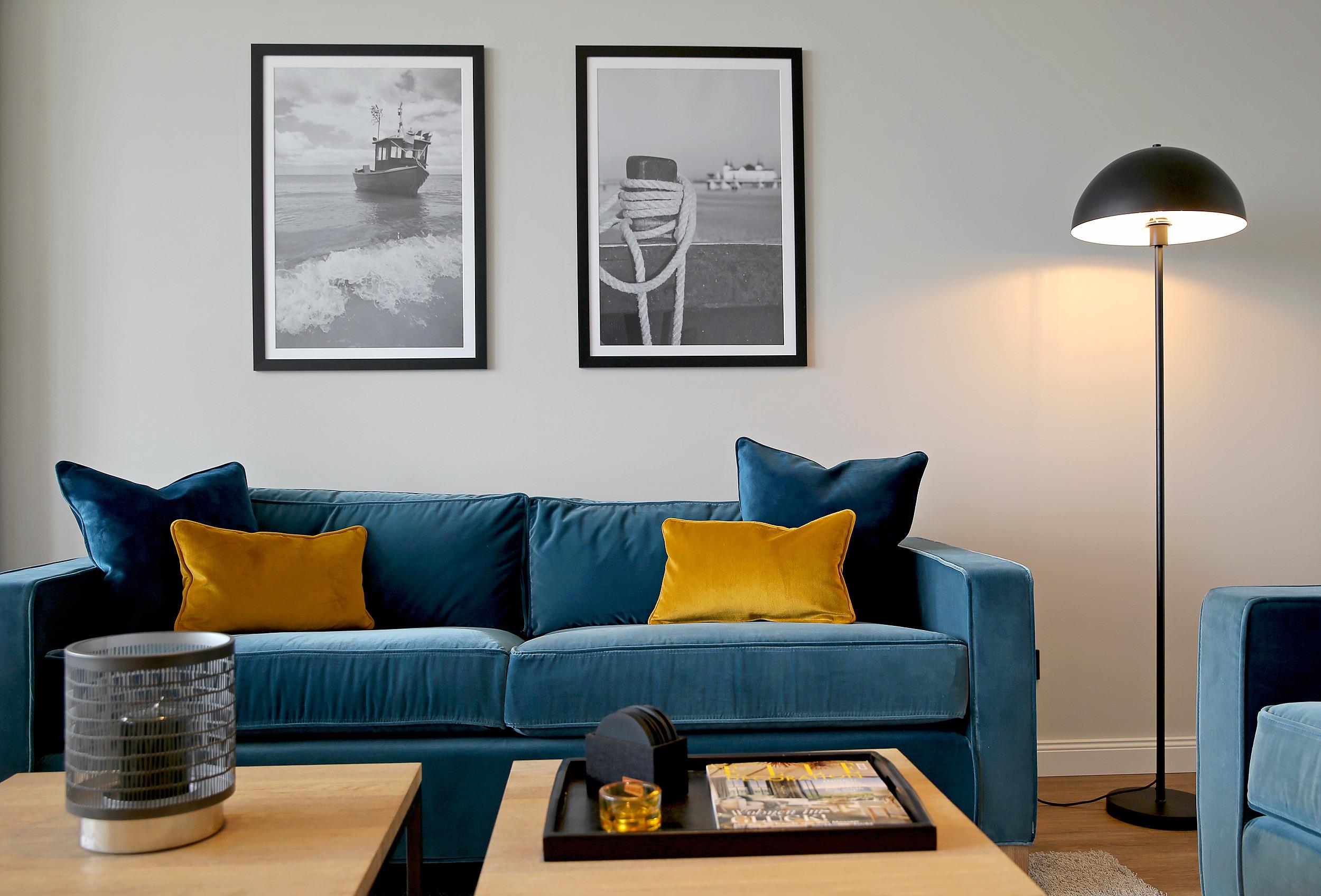 Die hell und modern eingerichtete Wohnung "Stettiner Haff" bietet mit 3 Zimmern und ca. 80 qm viel Raum für bis zu 4 Personen. 2 separate Schlaf- und Badezimmer ermöglichen eine flexible Belegung. Genießen Sie Ihren morgendlichen Kaffee bei traumhaftem Blick aufs Meer. Die zur See ausgerichteten, ehemals offenen Veranden, wurden für die jahreszeitunabhängige Nutzung ansprechend verglast in die Wohnung integriert. Das stilvolle und moderne Mobiliar sowie das geschmackvolle Farbkonzept vereinen Moderne und Gemütlichkeit. Ein vollausgestatteter Küchenbereich lädt zum gemeinsamen Kochen ein.