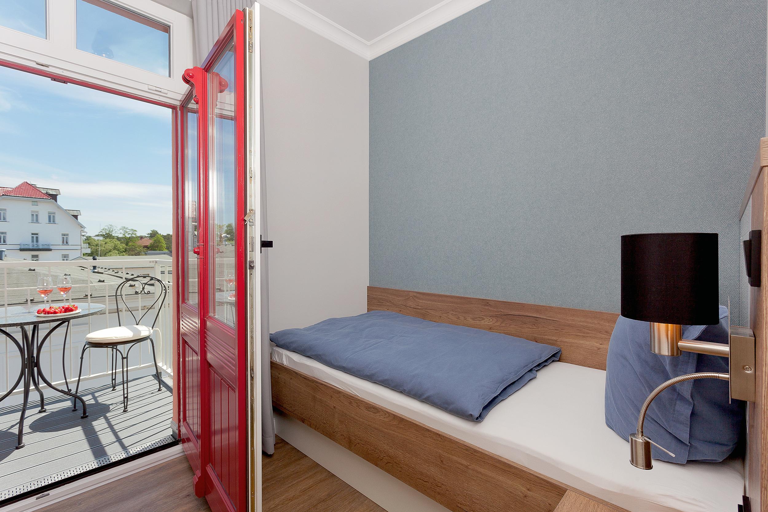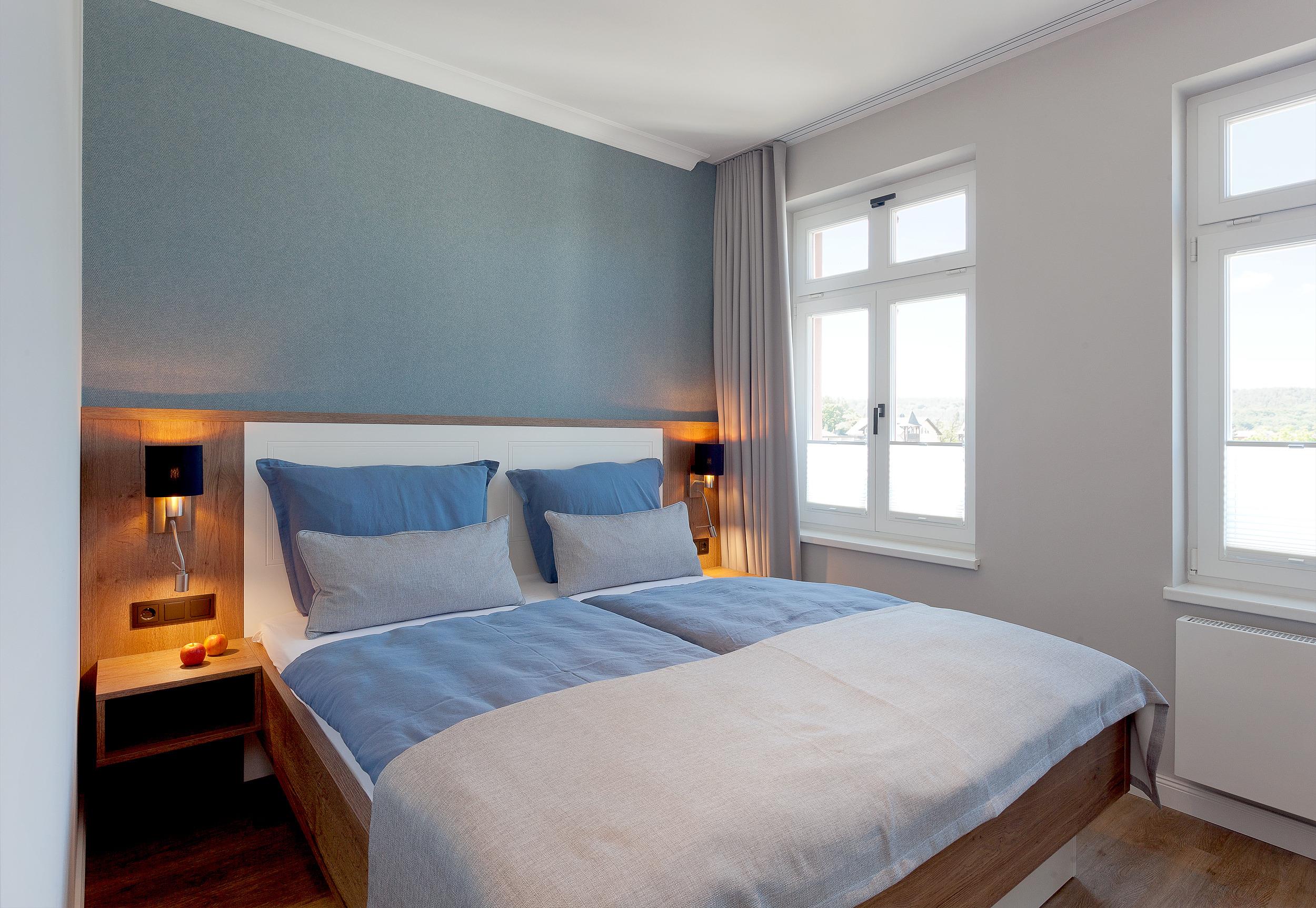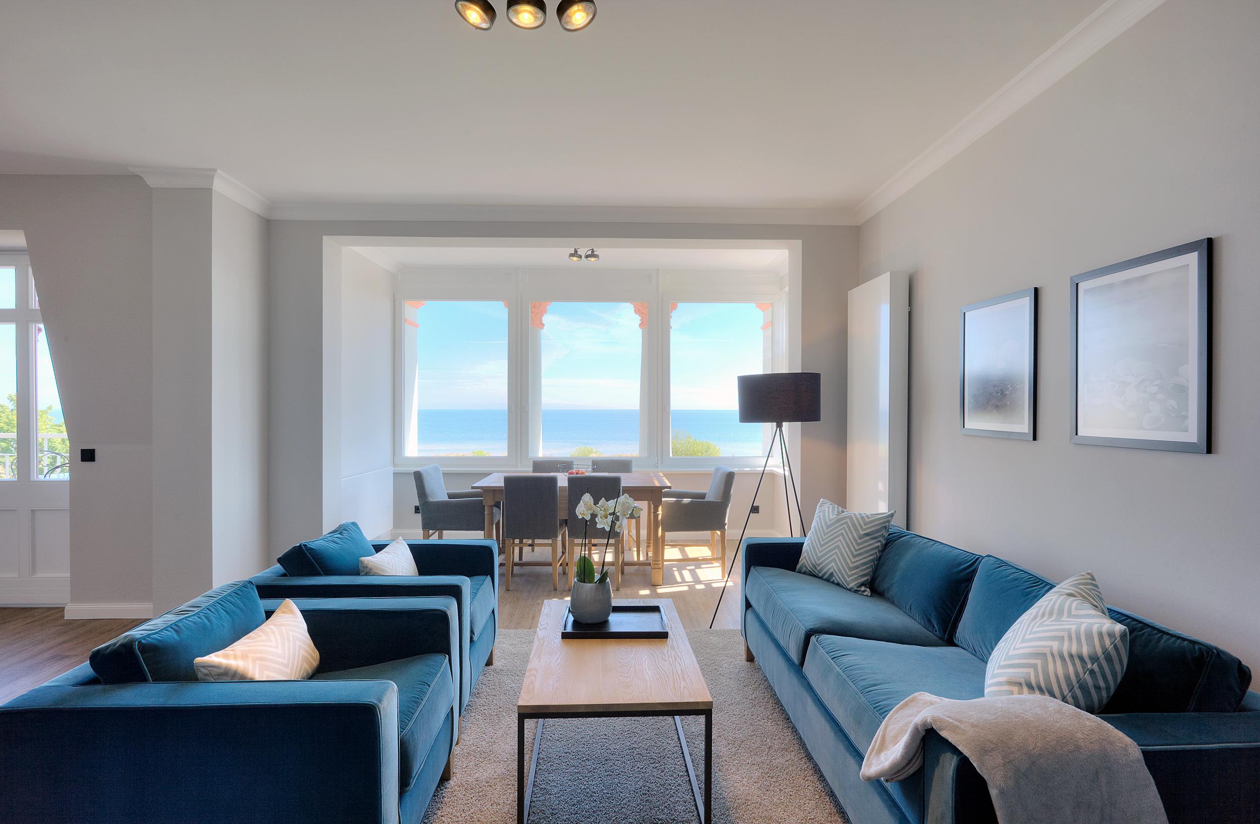Die stilvoll eingerichtete Wohnung "Pommersche Bucht" ist mit 4 Zimmern und ca. 95 qm die größte Wohnung in der Villa Seeblick. Sie bietet mit ihren 3 separaten Schlaf- und 2 Badezimmern eine flexible Belegung für bis zu 5 Personen. Genießen Sie den atemberaubenden Panoramablick auf die Küste und in die Pommersche Bucht bis nach Polen von einem der 2 offenen Balkone oder aus der ehemals offenen Veranda, die ansprechend verglast in die Wohnung integriert wurde. Vor dem gemütlichen Kamin lässt es sich an kühleren Tagen vortrefflich entspannen. In der Infrarotkabine verwöhnen Sie Körper und Geist mit gesunder Wärme.