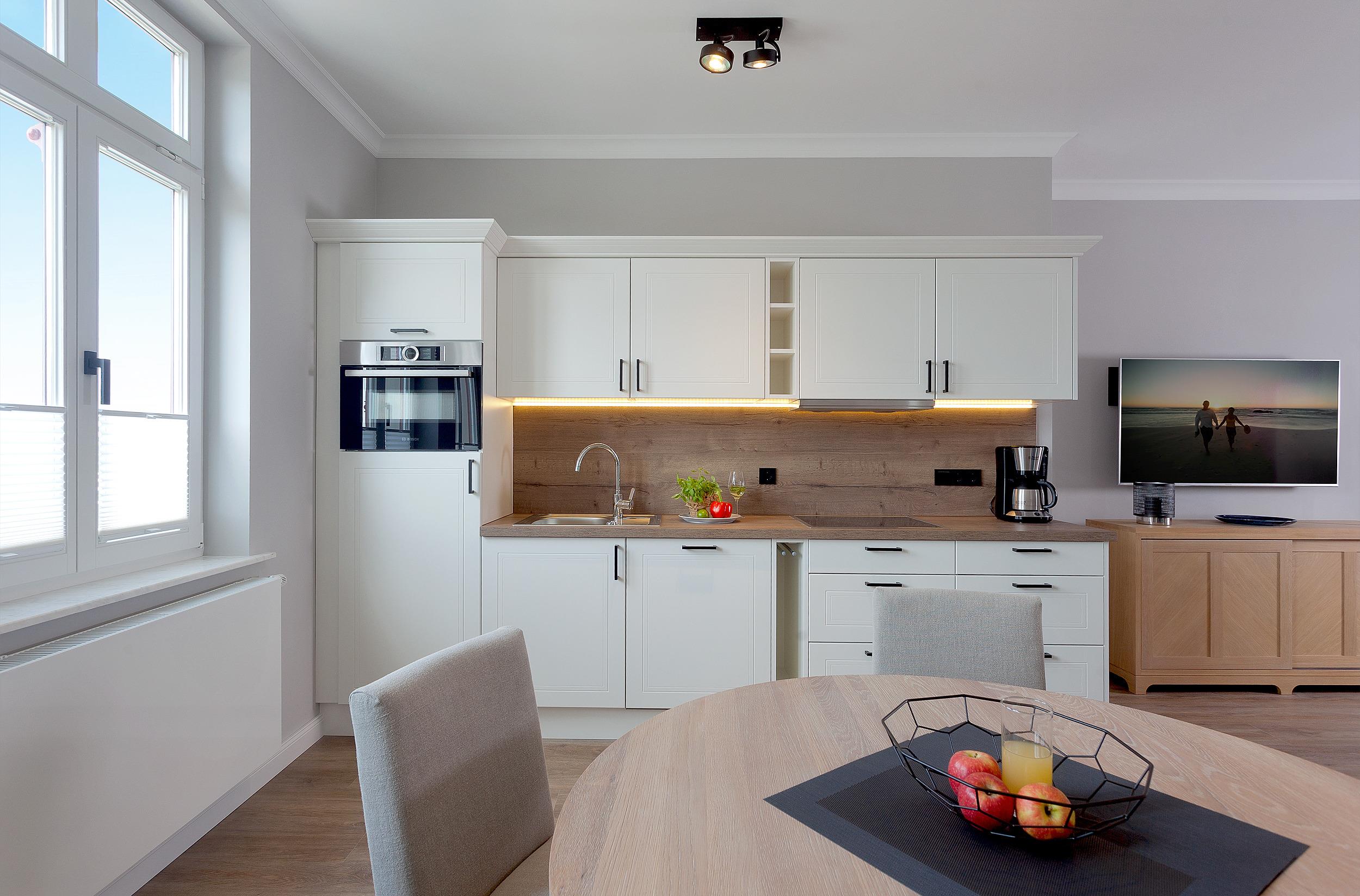 Die Wohnung "Kachliner See" bietet mit 3 stilvollen, hellen und modernen Zimmern und ca. 60 qm Platz für bis zu 4 Personen. 2 separate Schlafzimmer ermöglichen eine flexible Belegung. Genießen Sie über den südseitig ausgerichteten offenen Balkon seitlichen Meerblick. Große Fensterfronten sorgen für lichtdurchflutete Räume. Der gemütliche Kamin bietet auch in der kälteren Jahreszeit wohlige Wärme und Entspannung. Die vollausgestattete offene Küche lädt zum gemeinsamen Kochen ein. Haustiere sind in dieser Einheit willkommen.
