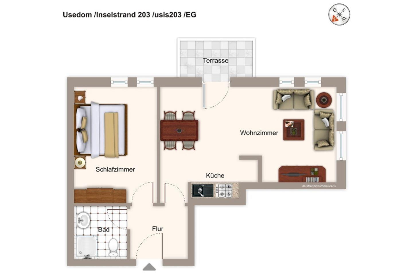 Die gemütliche Ferienwohnung befindet sich in südöstlicher Lage im Erdgeschoss von Haus 2 des Gebäudeensembles Inselstrand. Der Strand und die Ostsee liegen praktisch vor eurer Haustür - in nur 50 Metern erreicht ihr die Promenade, den feinsandigen, kilometerlangen Strand und die älteste Seebrücke Deutschlands, die bereits mehrfach als Filmkulisse diente. In der Umgebung warten zahlreiche Ausflugsmöglichkeiten auf euren Besuch und in wenigen Schritten erreicht ihr eine Vielzahl von Einkaufmöglichkeiten, kleinen Geschäften, Restaurants und Cafés.