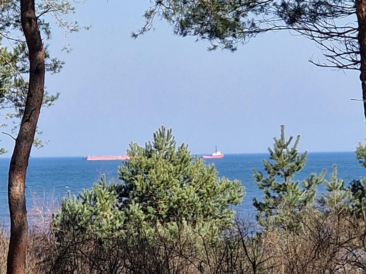 Die Ostsee kann man durch die wunderschönen, pinienartigen Strandkiefern hindurch glitzern sehen und der Blick vom Balkon auf die Promenade ist immer interessant.