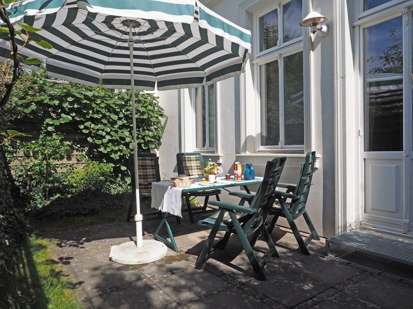 Genießen Sie die Annehmlichkeiten unseres Hauses, das von altem Baumbestand und einem liebevoll gestalteten Hof umgeben ist. Eine Grillecke lädt zu geselligen Abenden im Freien ein, während hauseigene PKW-Stellplätze (Breite 240 cm) und ein abschließbarer Fahrradraum für Ihre Mobilität und Sicherheit sorgen. Bitte beachten Sie, dass aufgrund von Platzbeschränkungen sehr große Fahrräder (Höhe >121 cm oder Gewicht >30kg) nicht im Fahrradraum untergebracht werden können. Für das Parken großer Fahrzeuge wie z. B. Großraum-Limousinen oder Campingwagen ( größer als L 470 cm und B 190 cm ) fehlt der Platz.