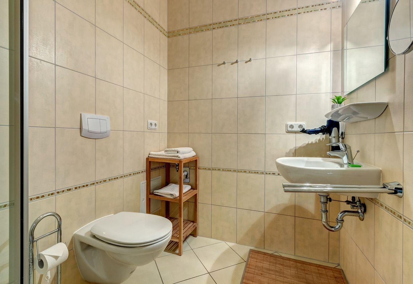 Die 4-Sterne-Luxus-Ferienwohnung bietet eine großzügige Wohnfläche, die perfekt auf Komfort und Erholung ausgelegt ist. Sie umfasst einen geräumigen Wohnbereich, eine offen gestaltete Küche, ein separates Schlafzimmer sowie ein modernes Duschbad. Die Wohnung bietet ausreichend Platz und ist ideal für zwei Erwachsene und ein Kleinkind, die Wert auf eine stilvolle und zugleich gemütliche Unterkunft legen.