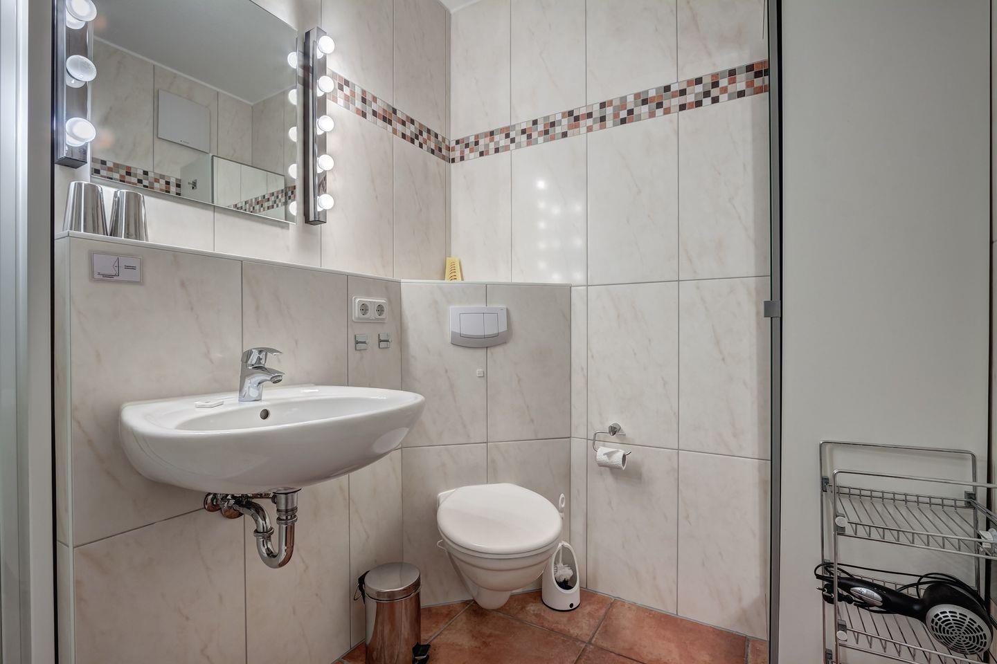 Besonders hervorzuheben ist die angrenzende Terrasse, die direkt vom Wohnzimmer aus zugänglich ist. Hier können Sie die Sonne in vollen Zügen genießen und den Tag entspannt ausklingen lassen.