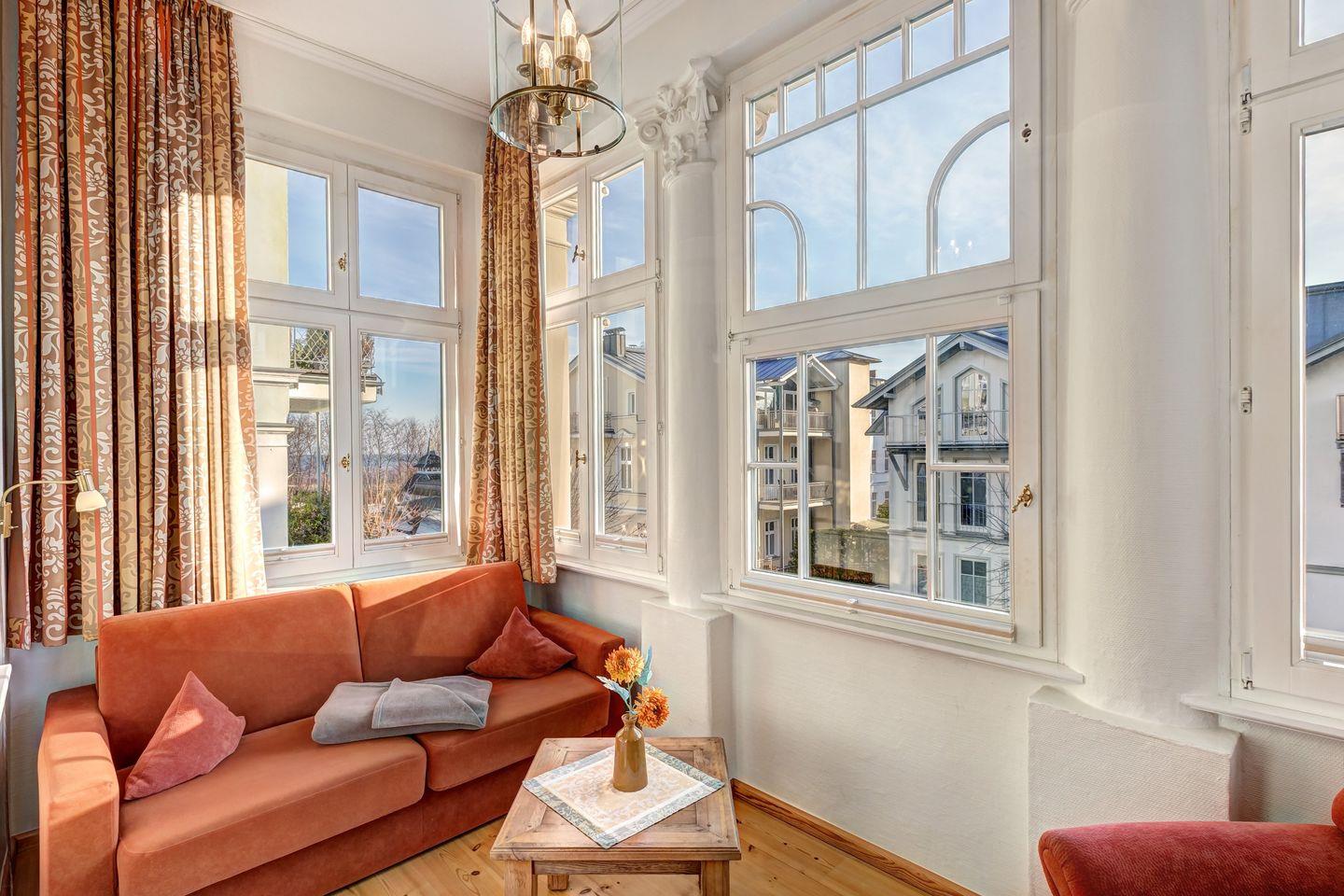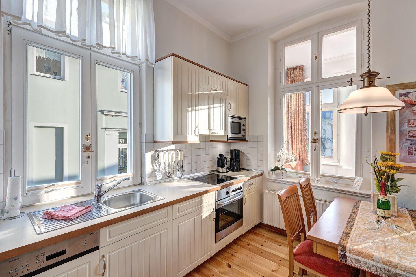 Die Wohnung "Warnemünde" befindet sich in einer bezaubernden Jugendstilvilla, nur wenige Schritte von der Promenade und dem Strand entfernt – der perfekte Ort, um das Meer und die Umgebung zu genießen.