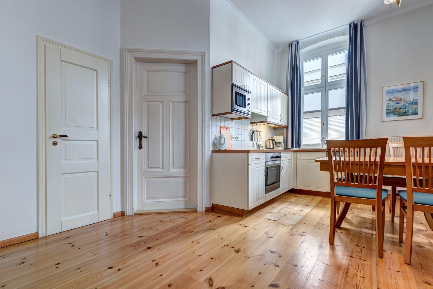Das großzügige Wohnzimmer mit offener Küche und einem einladenden Essbereich lädt zum Verweilen und Genießen ein. Hier können Sie entspannen und Ihre Zeit in Kühlungsborn in vollen Zügen genießen.