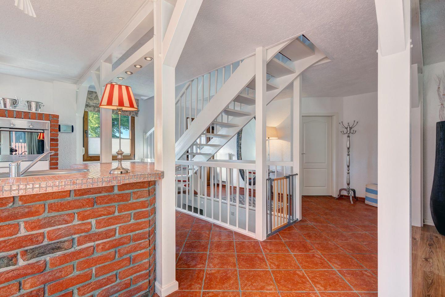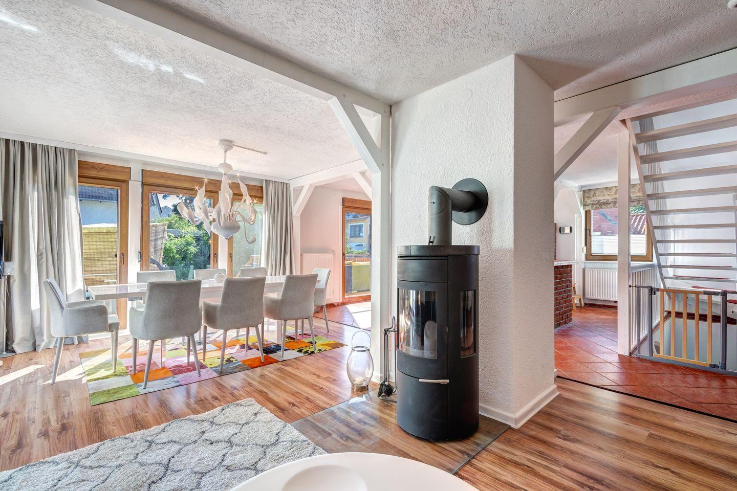 Erleben Sie Usedom auf eine moderne, trendige und extravagante Art. Das großzügige Ferienhaus erstreckt sich über 150 qm auf zwei Etagen und bietet im Obergeschoss 3 Schlafzimmer mit Doppelbetten, ideal für 6 Erwachsene und 2 Kleinkinder. Das Wohnzimmer begeistert mit einem Kamin und einer stilvollen Essgruppe, das sich zur voll ausgestatteten Küche öffnet. Zwei Bäder (1x mit Badewanne & Dusche / 1x mit Dusche) vervollständigen das Angebot.